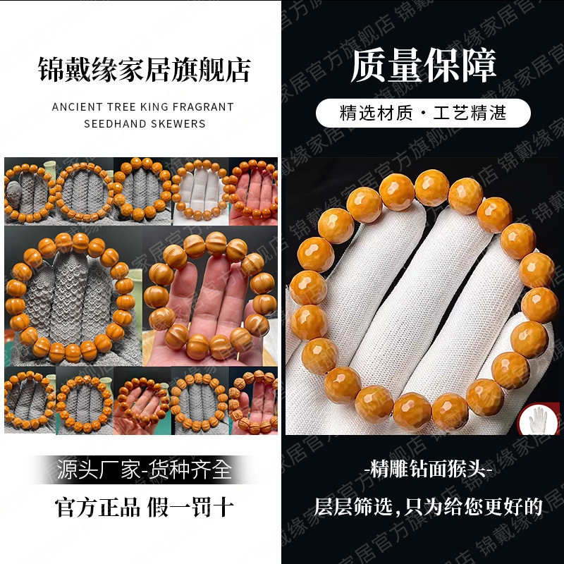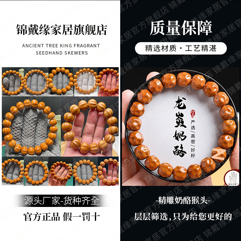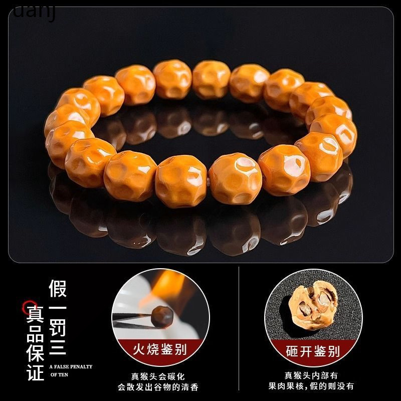 厂家老树猴头手串刻奶酪六方无相圆珠光珠文玩桃核手串男款直销