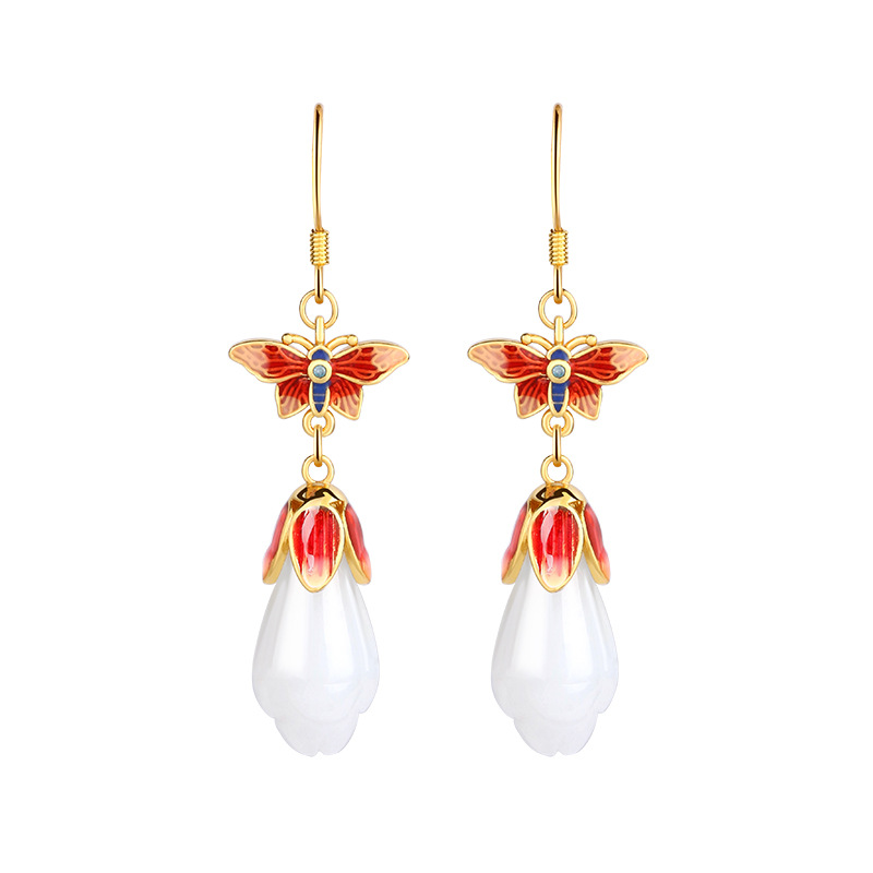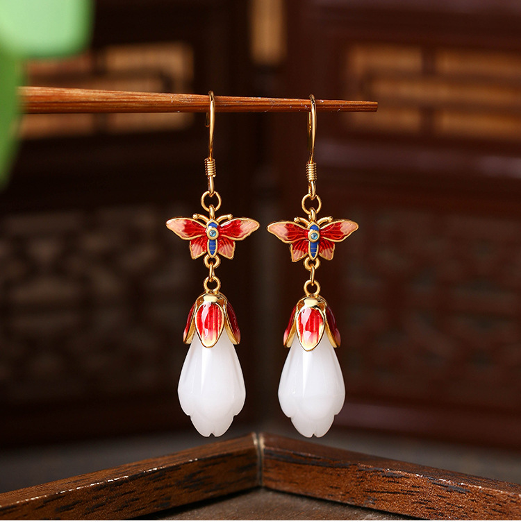 o1cn01f9ugvm2nqp6mzydye 2200655039958 0 cib新中式祥云蝴蝶耳环珐琅彩复古仿玉石古典国潮耳钉国风小众耳饰女