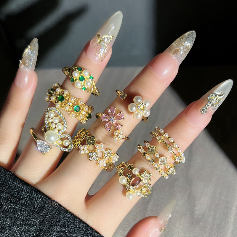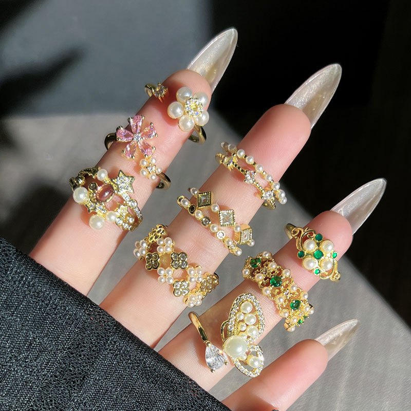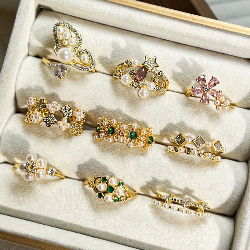 珠华金缀法式复古珍珠镶嵌高级感戒指女时尚几何花朵轻奢百搭指环