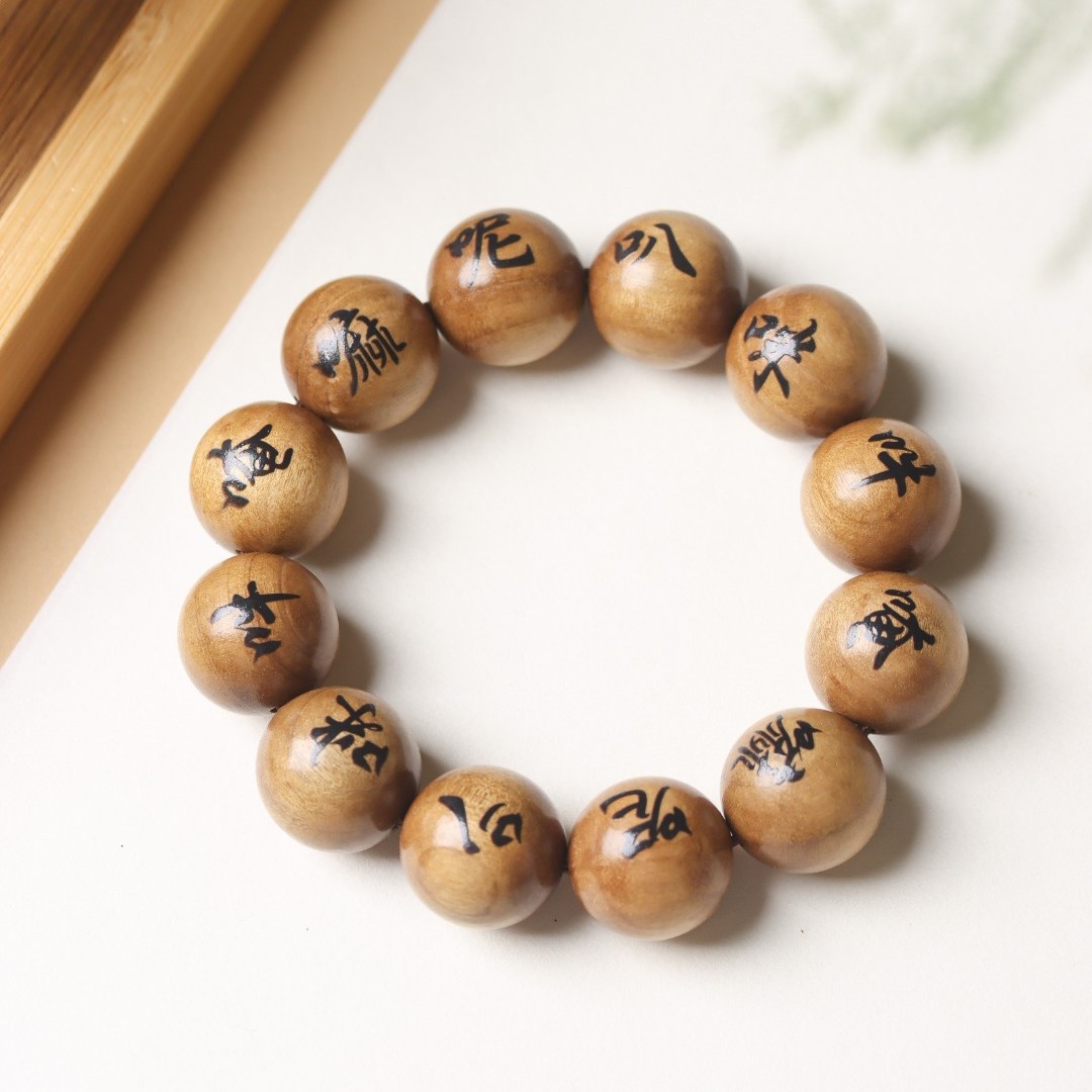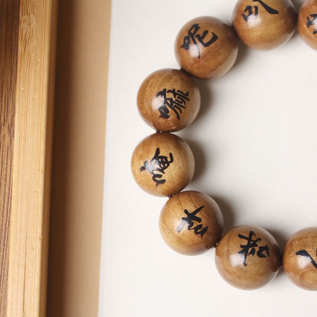 金丝楠彩绘唵吗呢叭咪款手串规格2.0男女念珠文玩装饰品厂家批发