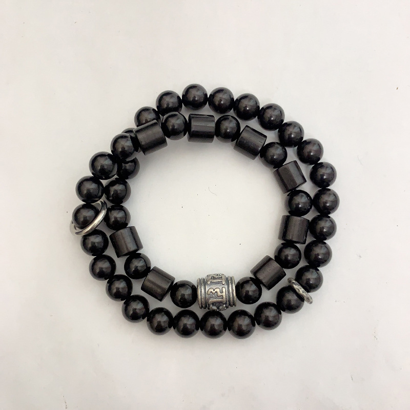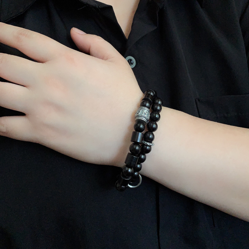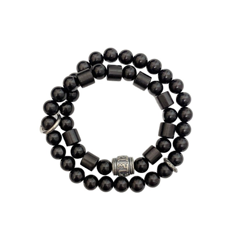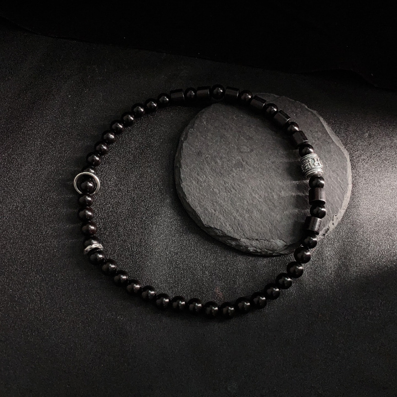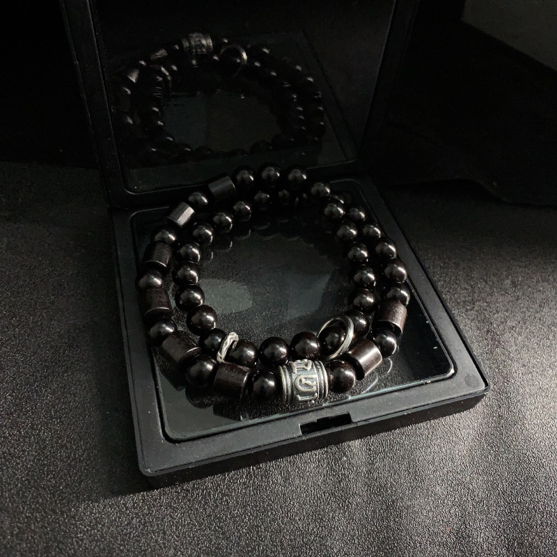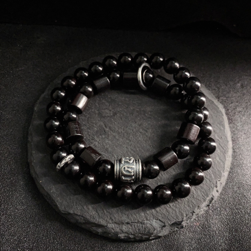 黑檀木双层手串男生轻奢复古民族风六字真言37银手链男女款配饰