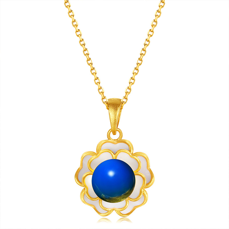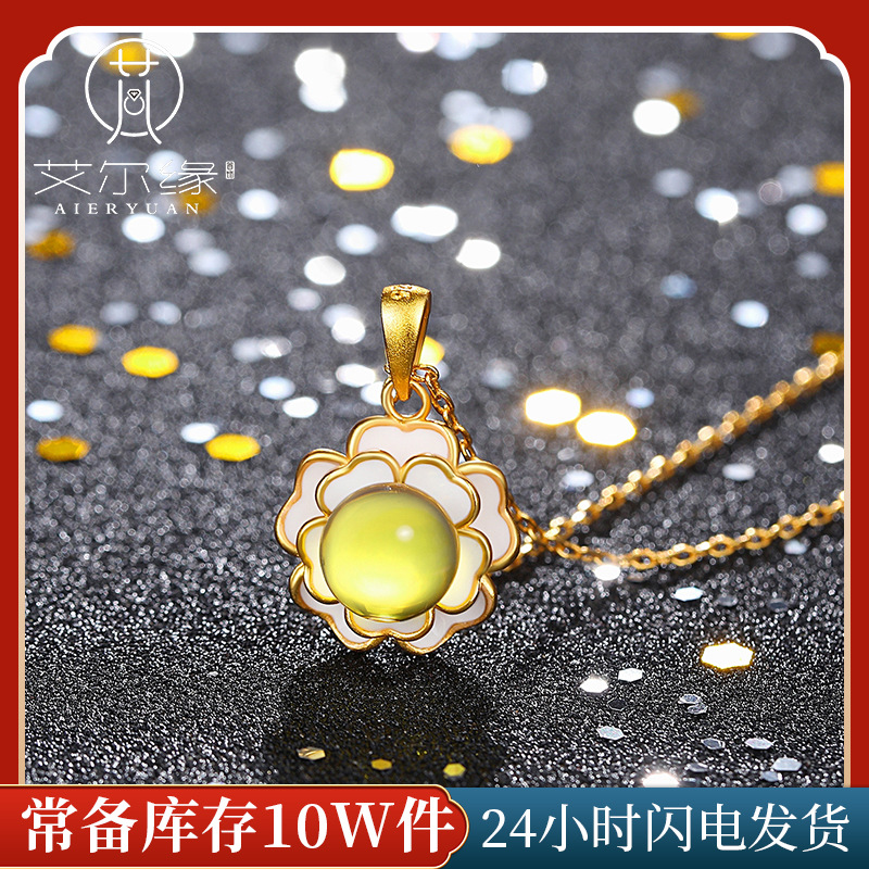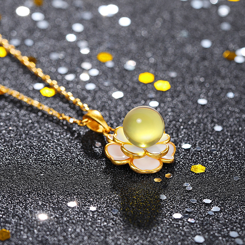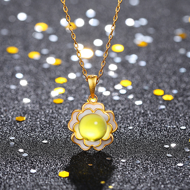 2021 Autumn and Winter National Fashion Classical Cheongsam Hanfu Accessories Camellia Mosaic Second Generation Lampoon Amber Pendant Necklace
