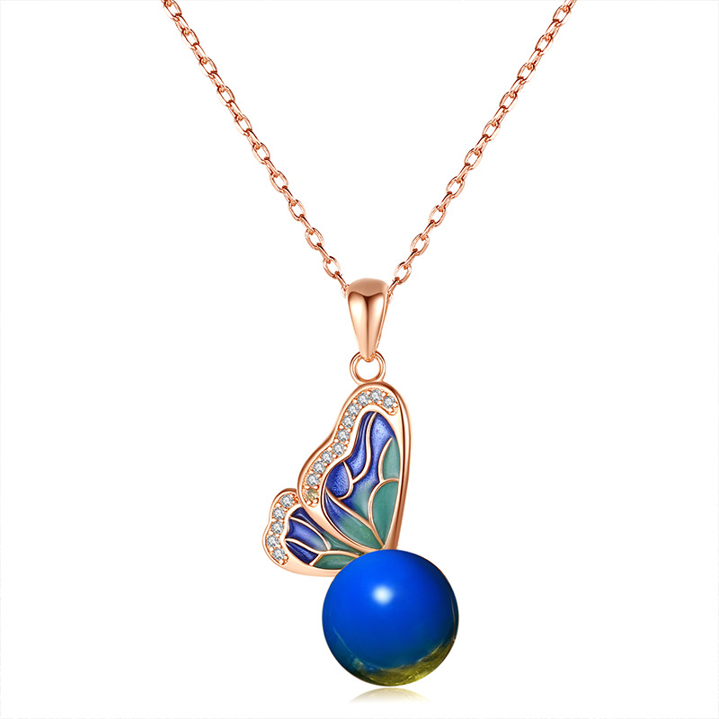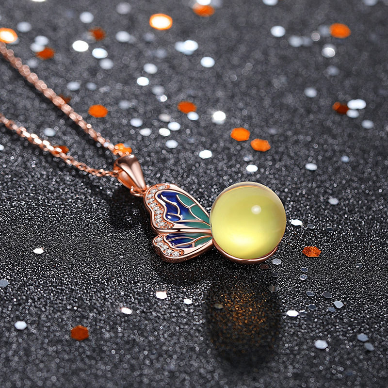 2021 Autumn and Winter National Fashion New Accessories Plated 18K Rose Gold Enamel Inlaid with Second Generation Lampert Amber Necklace