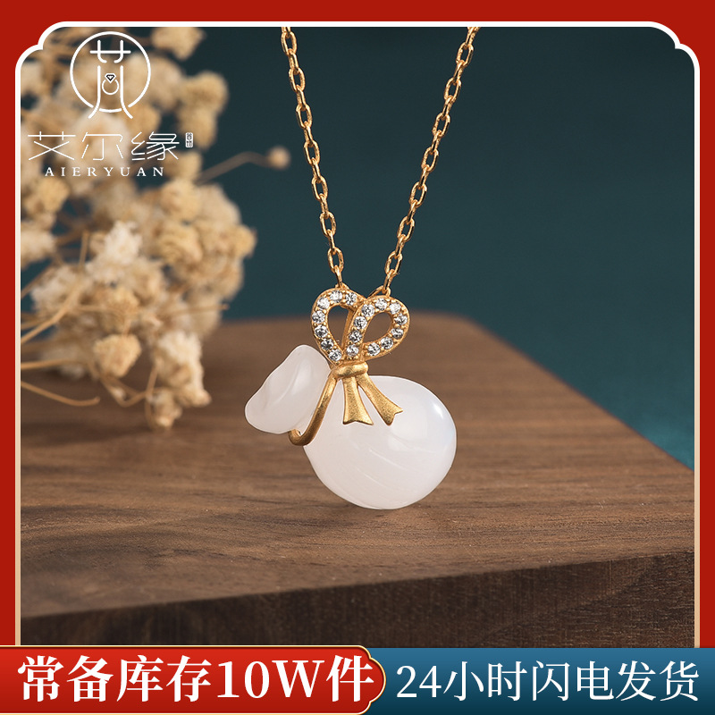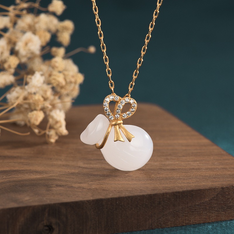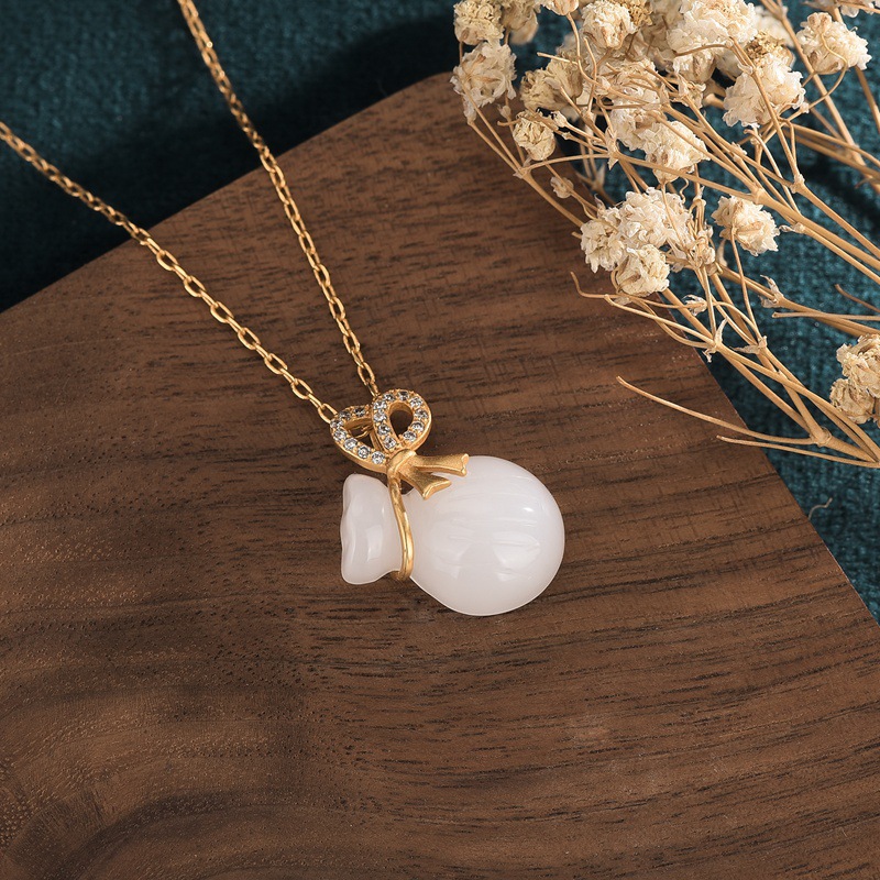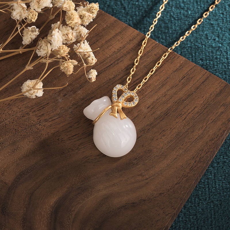 2021 national fashion new accessories Chinese style cheongsam Hanfu necklace water bottle wallet imitation Hetian jade vintage necklace for women