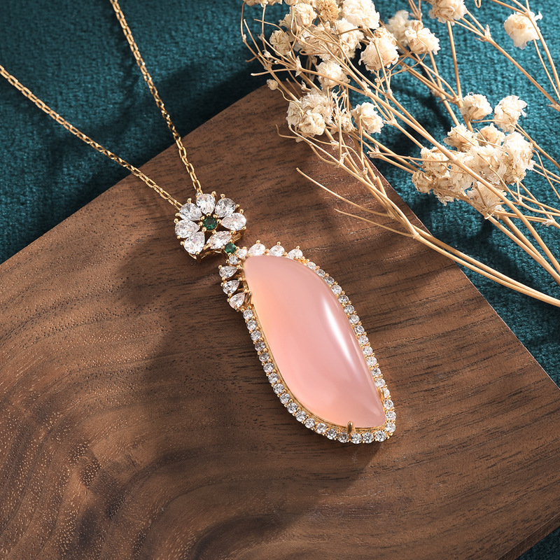 2021 national fashion new accessories natural ice chalcedony Sun Green no-matter leaf necklace men’s and women’s jade pendant