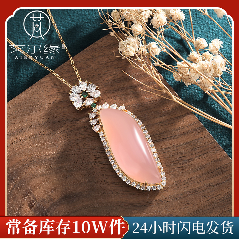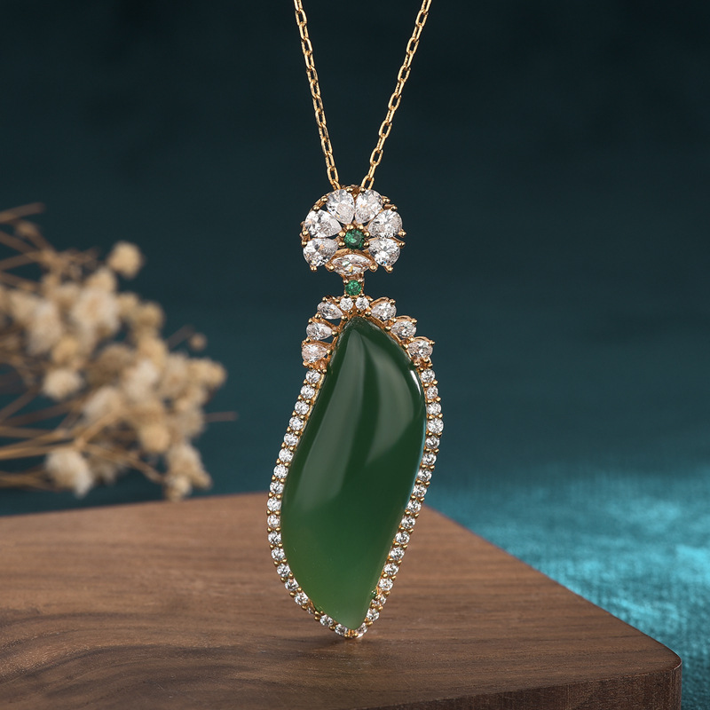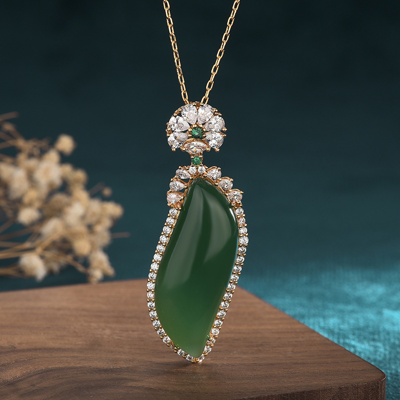 o1cn01h6ypef1bs2vjfa5rp 0 0 cib2021 national fashion new accessories natural ice chalcedony Sun Green no-matter leaf necklace men’s and women’s jade pendant