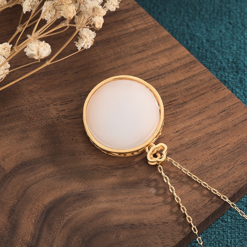 2021 Summer New Hetian Jade Necklace Women’s Bronze Gold-plated Chinese Style Gold-plated Blue Cloisonne Lotus Jade Pendant