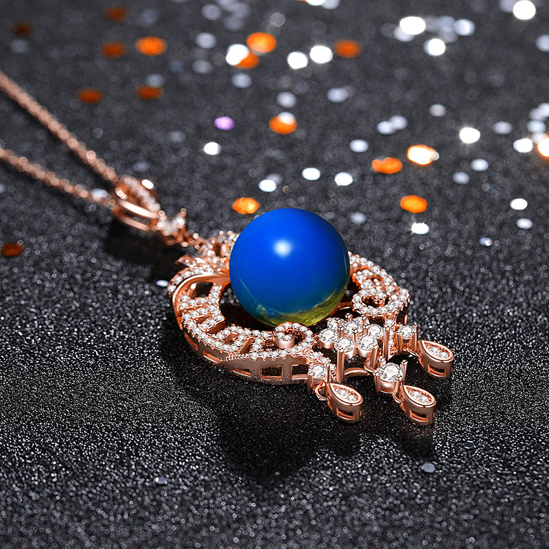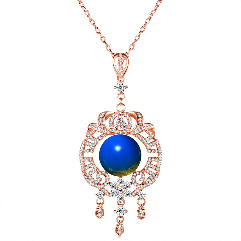 Be the first to review “2021 Winter New National Fashion Accessories 18k plated rose gold inlaid second generation blue amber tassel necklace women”