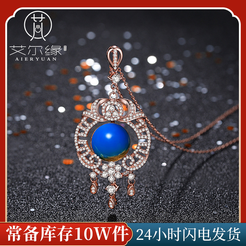 2021 Winter New National Fashion Accessories 18k plated rose gold inlaid second generation blue amber tassel necklace women