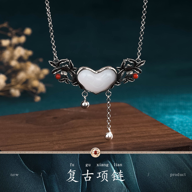 Be the first to review “2022 Early Spring National Tide Palace Style Accessories Inlaid Imitation Hetian Jade Peace Lock Pendant Vintage Electroplated Thai Silver Necklace”