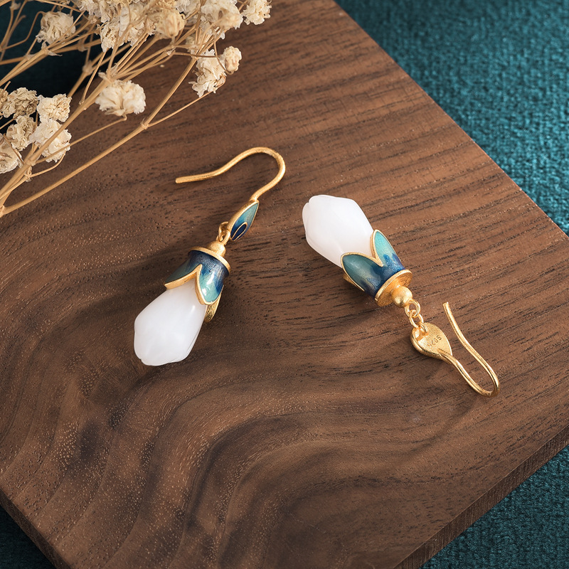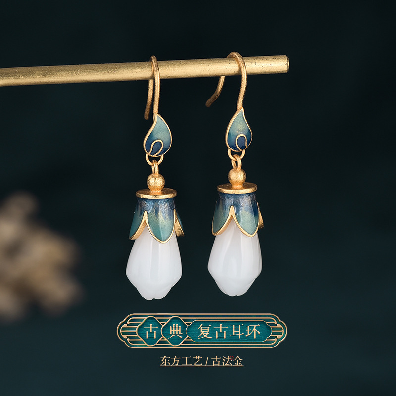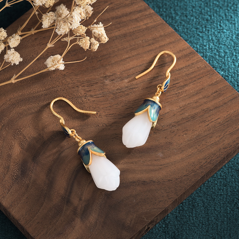 o1cn01qdlmi01bs2utxudsf 0 0 cib2022 National Fashion Magnolia Imitation Hetian Jade Earrings Retro Palace Hanfu Cheongsam Pendant Couple Girlfriend Gift
