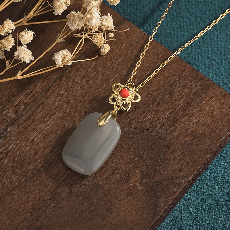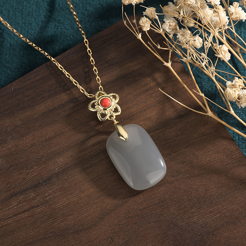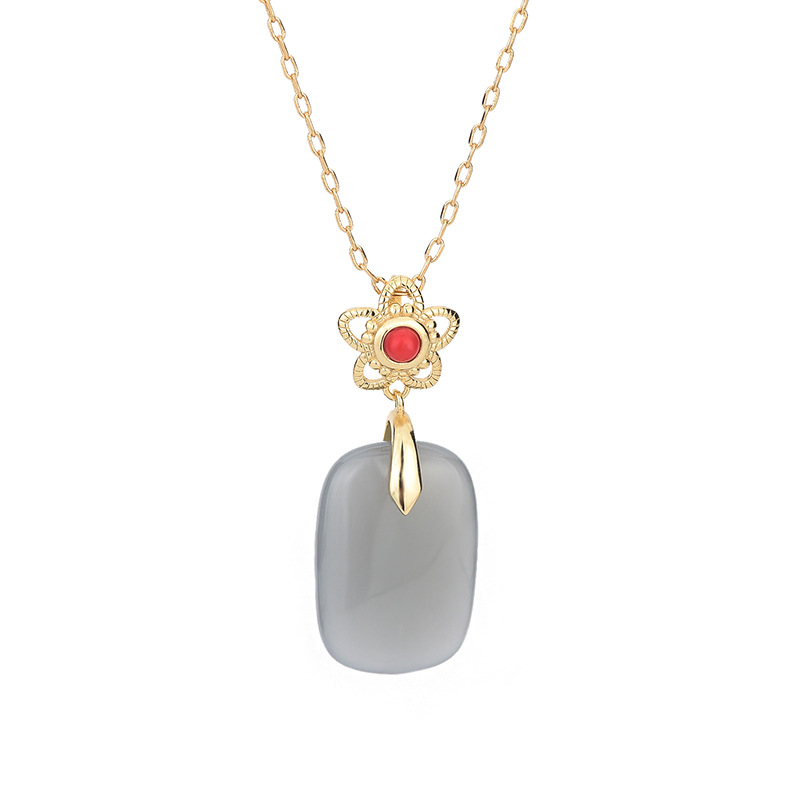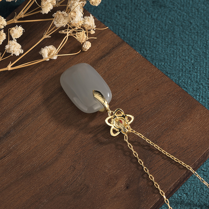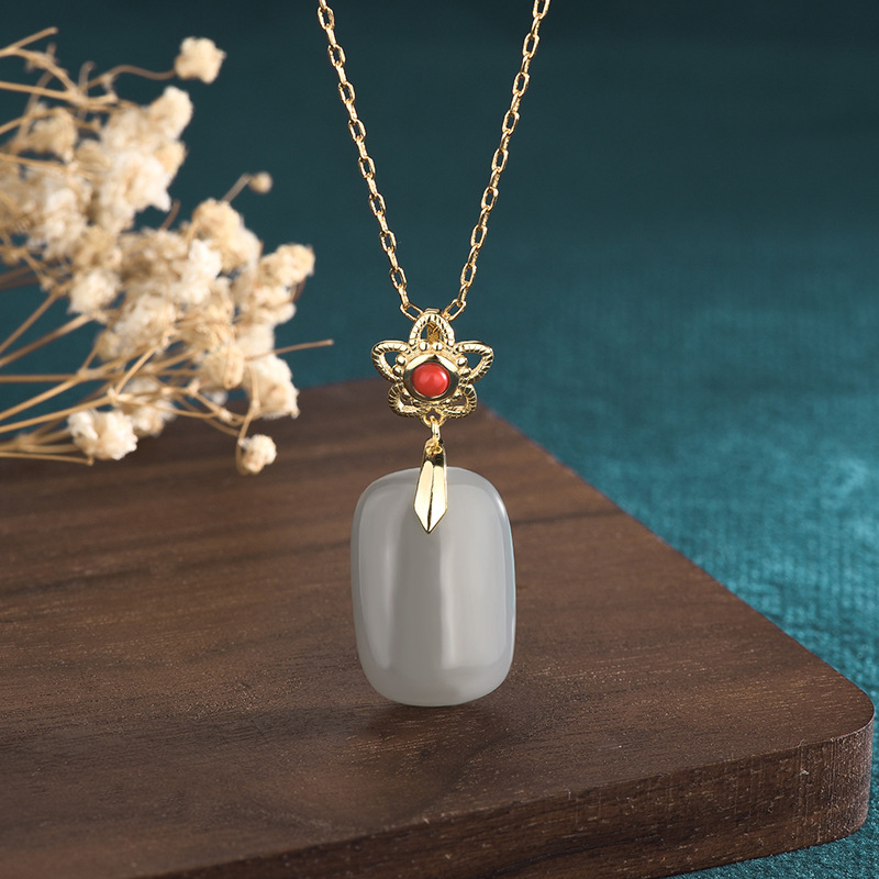 2022 national tide new costume Han dress girl accessories ancient gold plated inlaid imitation Hetian jade pendant retro necklace