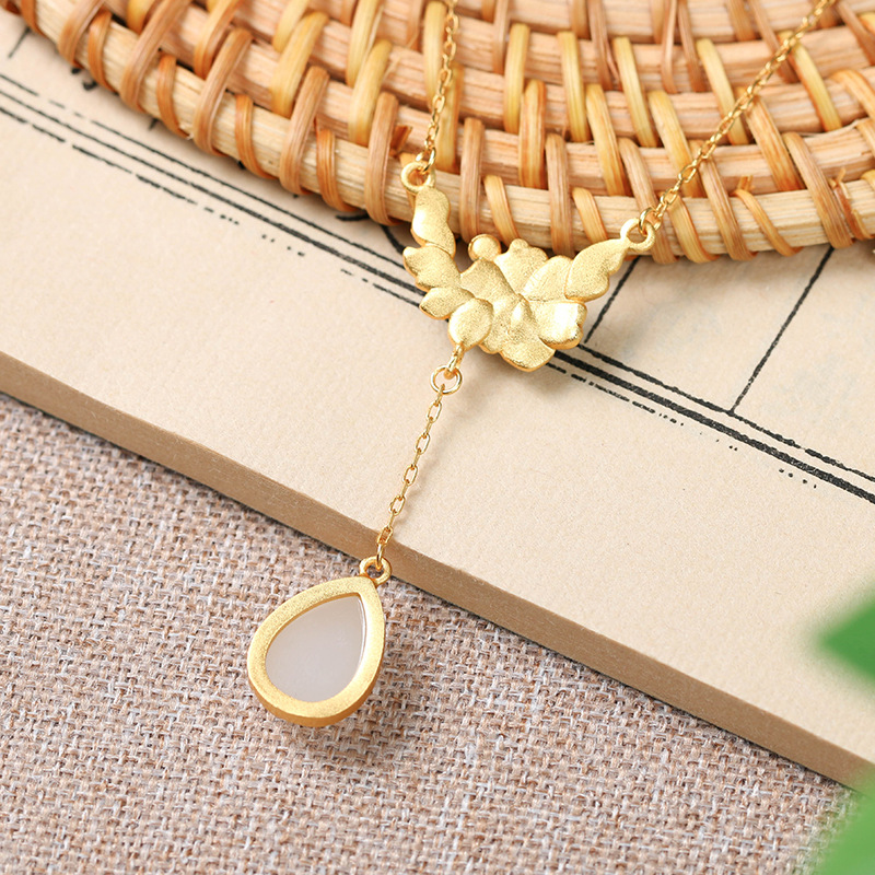Be the first to review “2022 National Tide Palace Vintage Accessories Cloisonne Gold-plated Glaze Peony Flower Water Drops Imitation Hetian Jade Pendant Necklace”