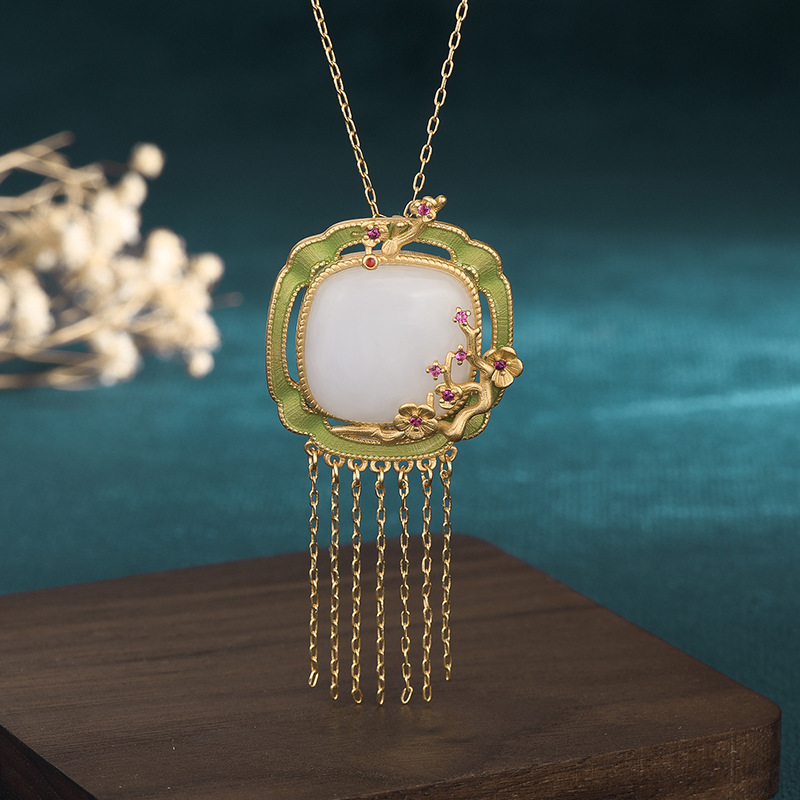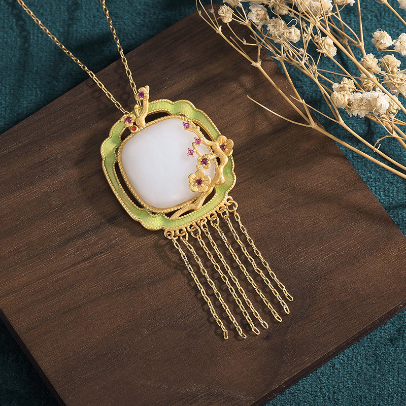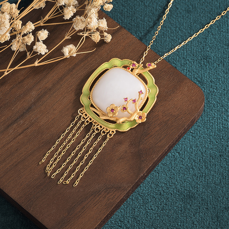 o1cn01xb0ubs1bs2vmpwru2 0 0 cib2022 spring country fashion new ancient costume accessories cloisonne plum inlaid imitation Hetian jade vintage jade pendant necklace