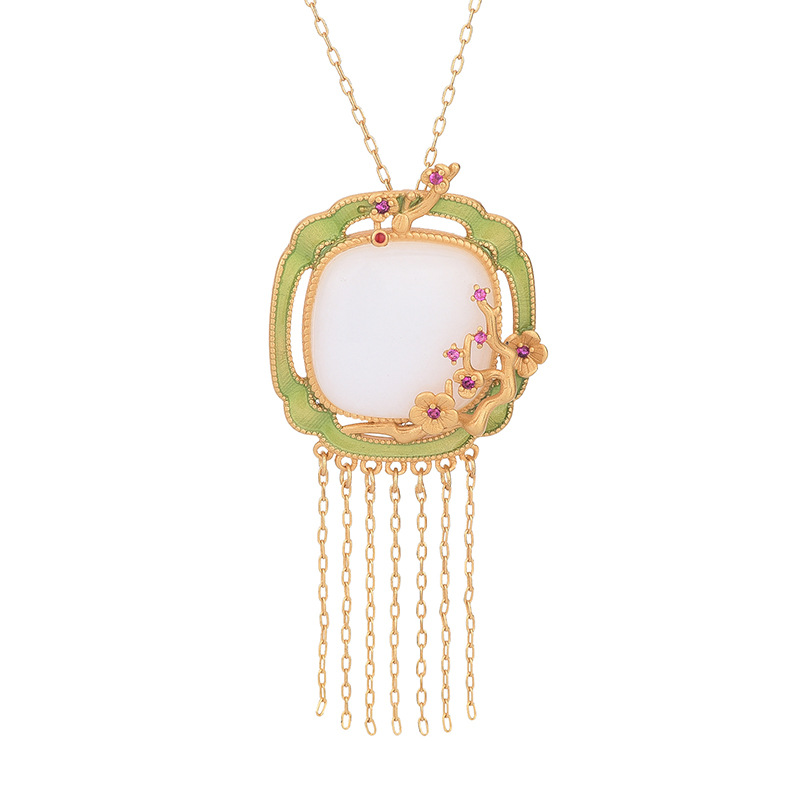 2022 spring country fashion new ancient costume accessories cloisonne plum inlaid imitation Hetian jade vintage jade pendant necklace
