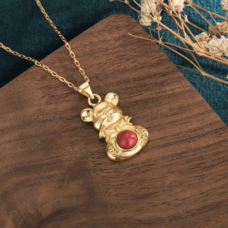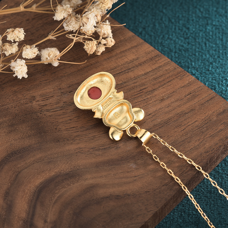 2022 Zodiac Year of the Tiger Tiger Tiger Shengwei Cornucopia Ancient Gold Plated Pendant Set with Imitation South Ruby Pendant Necklace
