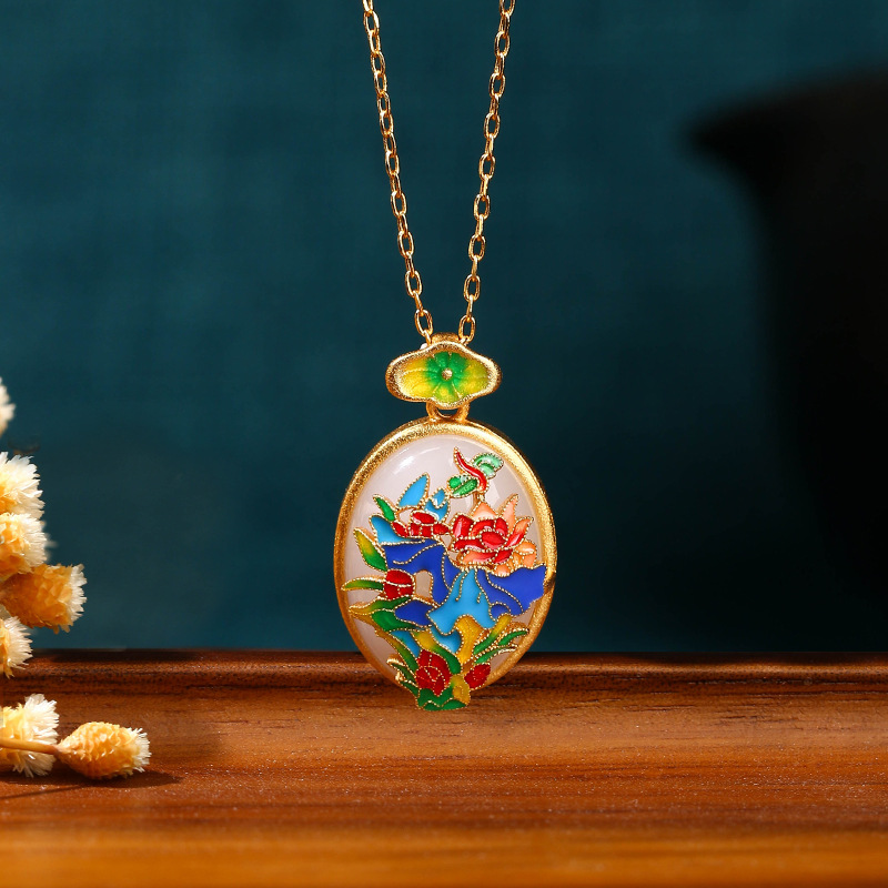 Be the first to review “2023 autumn and winter ancient Chinese style gold-plated flowers like brocade no-matter card imitation Hetian jade ancient style necklace niche light luxury”