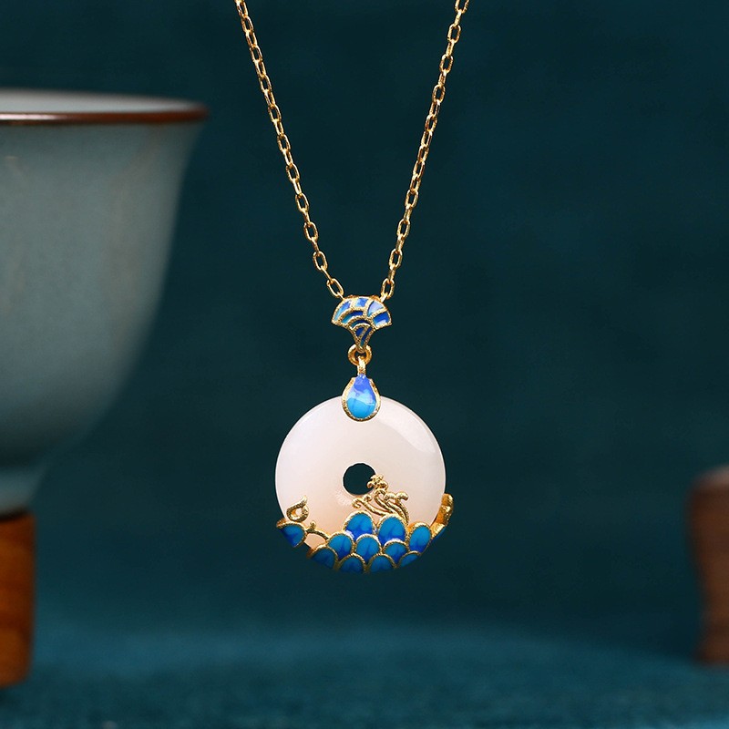 Be the first to review “2023 autumn and winter New style imitation Hetian jade safety buckle necklace women’s retro enamel Mountain and Sea ancient style jade pendant New”