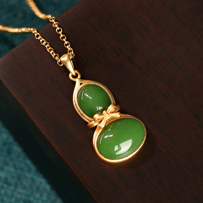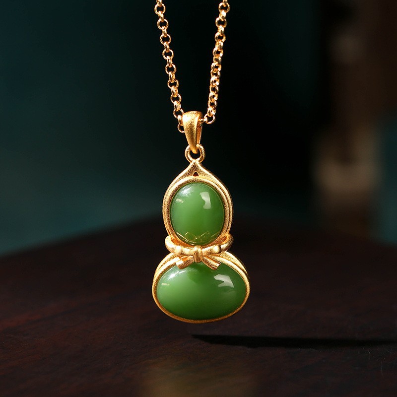 2023 Spring and Summer New Accessories Plated Ancient Method Gold Gourd Clavicle Necklace Antique Necklace Imitation Hetian Jade Pendant