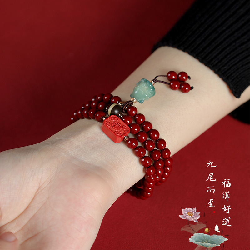 2024 Xinping cinnabar purple gold sand nine-tail Fox bracelet women’s Lucky Lucky Phoenix nine lucky lucky bracelet beads