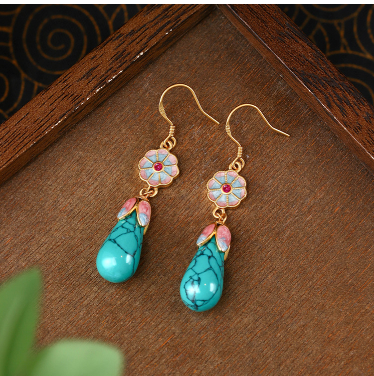 o1cn01pjuq4w1nvxr4mevq7 2210963861633 0 cib2025跨境国潮耳饰新品配饰古法金珐琅滴釉仿绿松石古风耳环国潮风