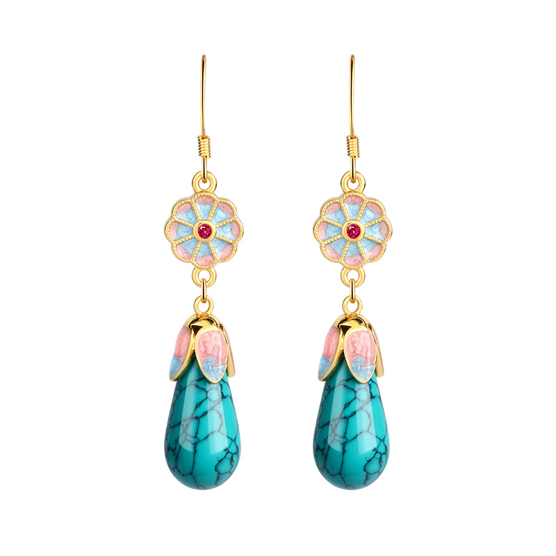 Be the first to review “2025跨境国潮耳饰新品配饰古法金珐琅滴釉仿绿松石古风耳环国潮风”