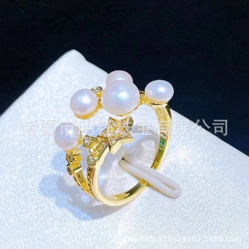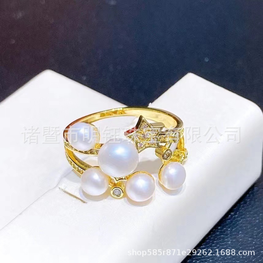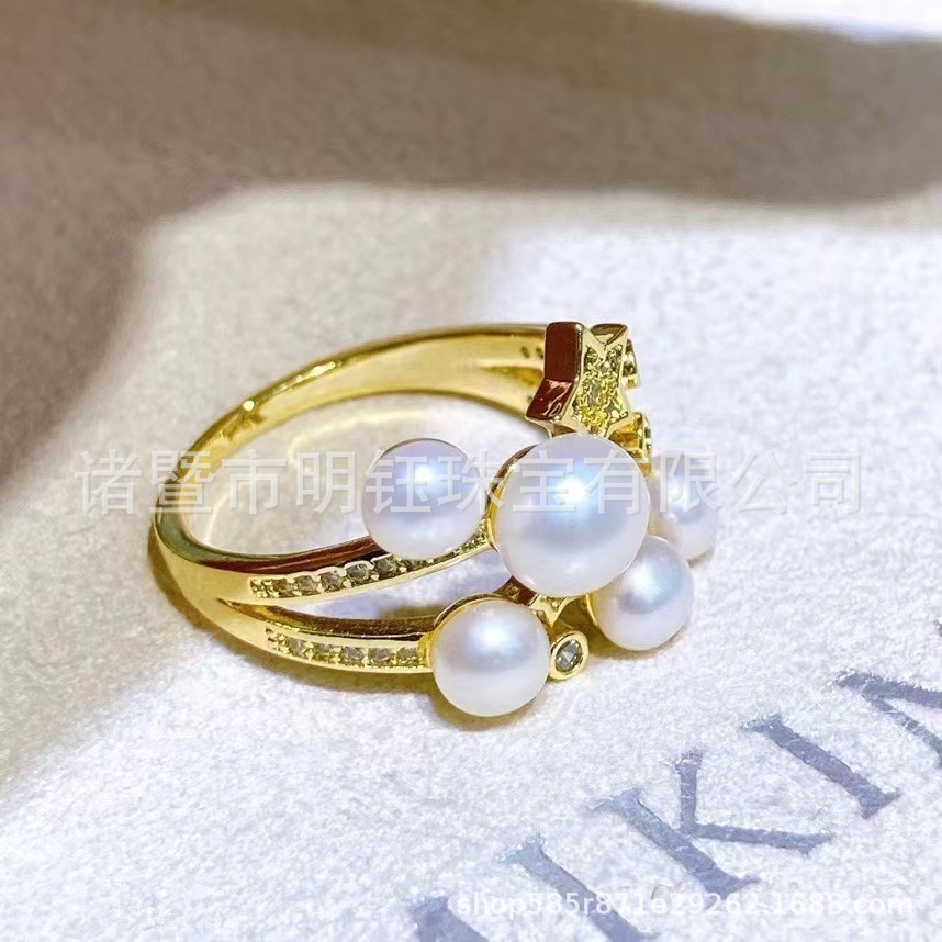 3~5mm high quality Freshwater Steamed Bread Pearl Ring 14k Gold Injection Opening Ring