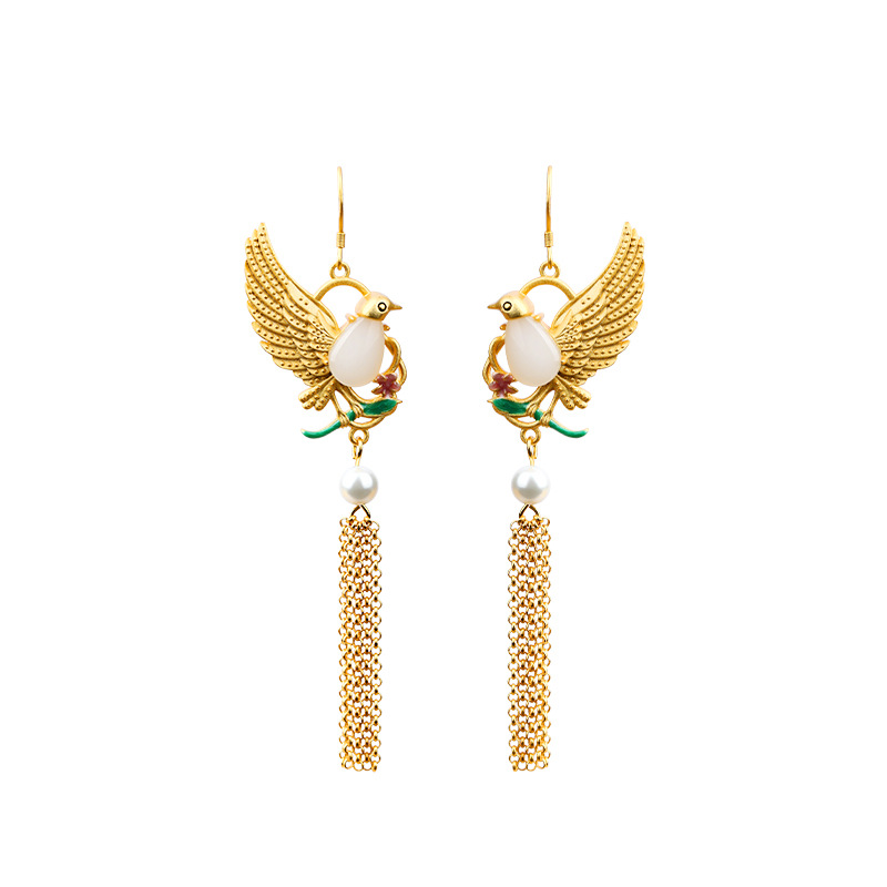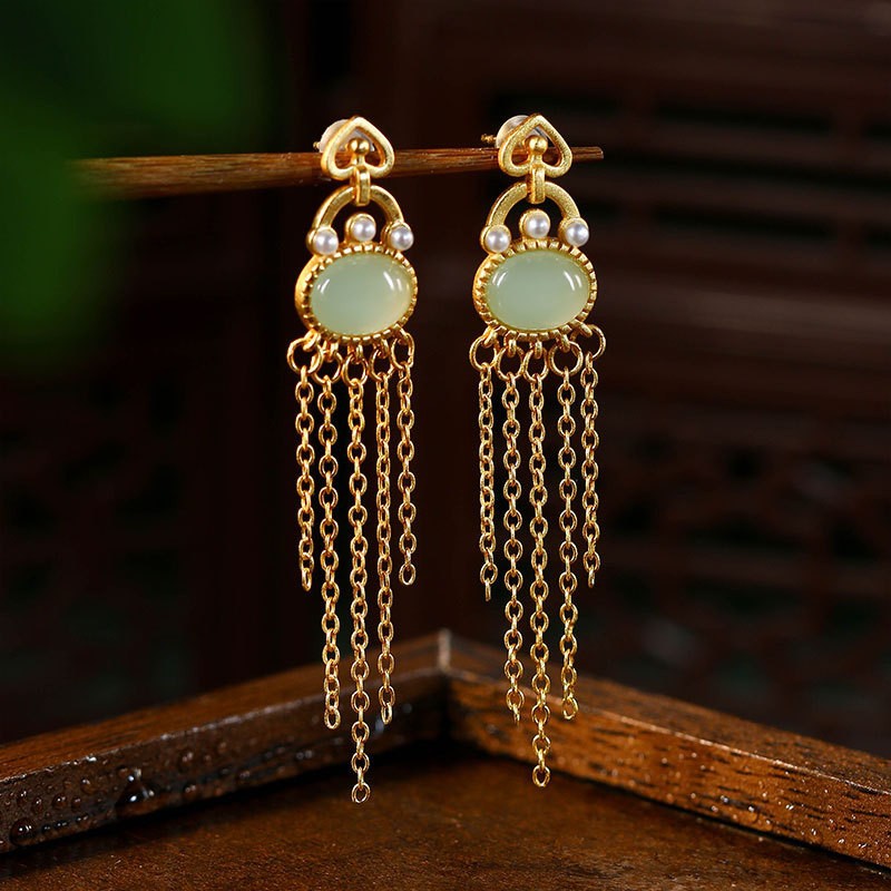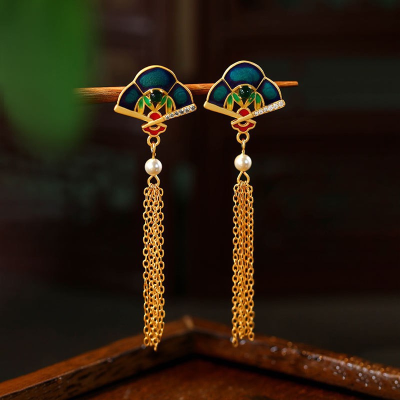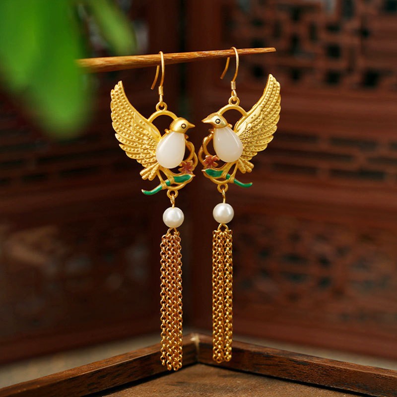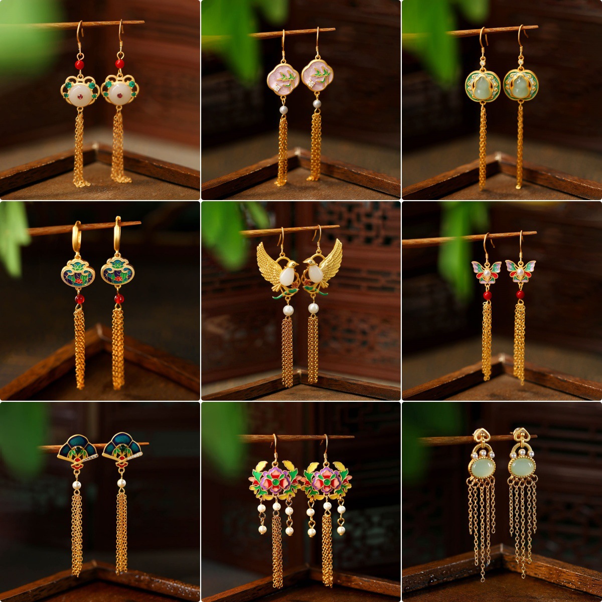 o1cn010witrr2nqp50dg0i4 2200655039958 0 cib925 Silver Needle Flying Double-wing Imitation Jade Earrings Women’s Enamel Niche Design High-grade Antique Tassel Earrings