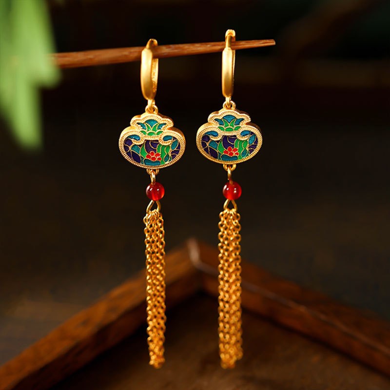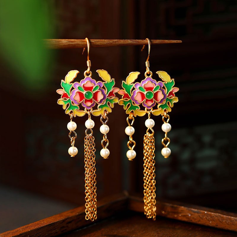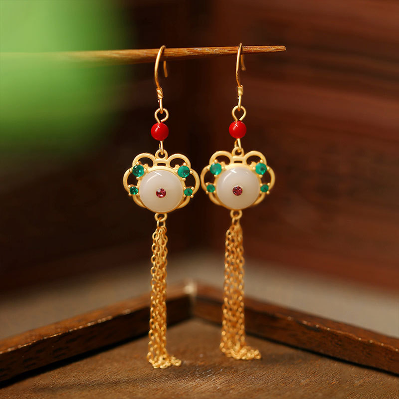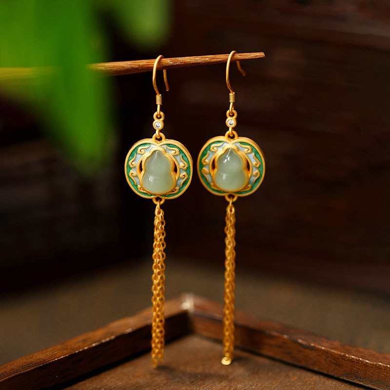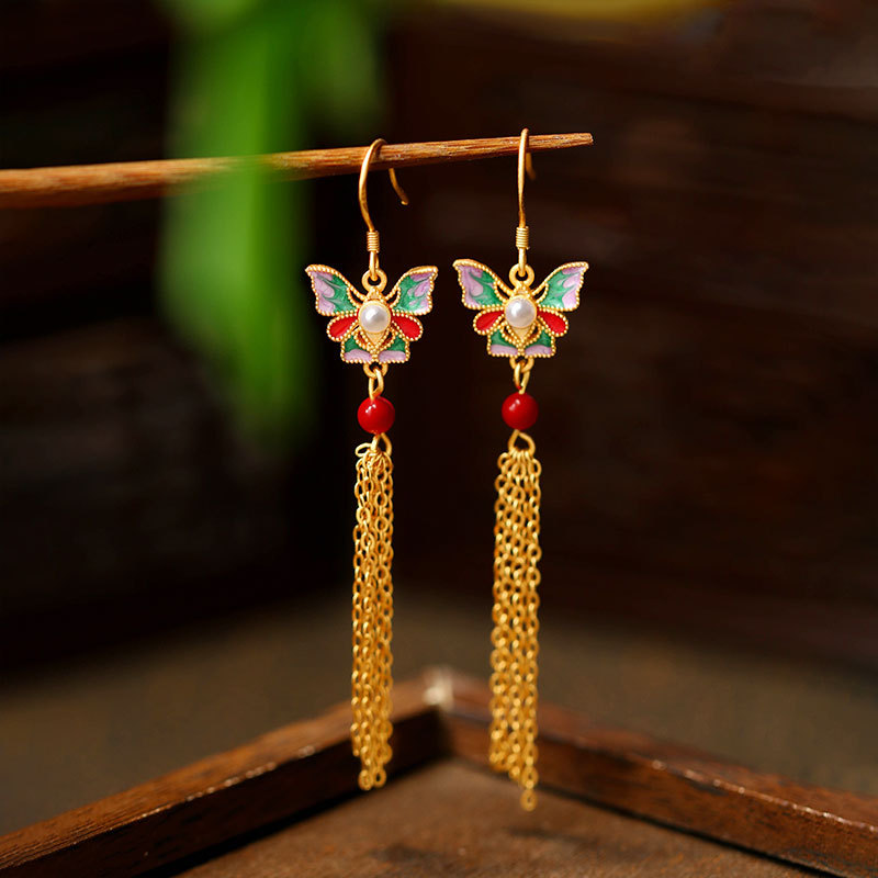 o1cn010witrr2nqp50dg0i4 2200655039958 0 cib925 Silver Needle Flying Double-wing Imitation Jade Earrings Women’s Enamel Niche Design High-grade Antique Tassel Earrings