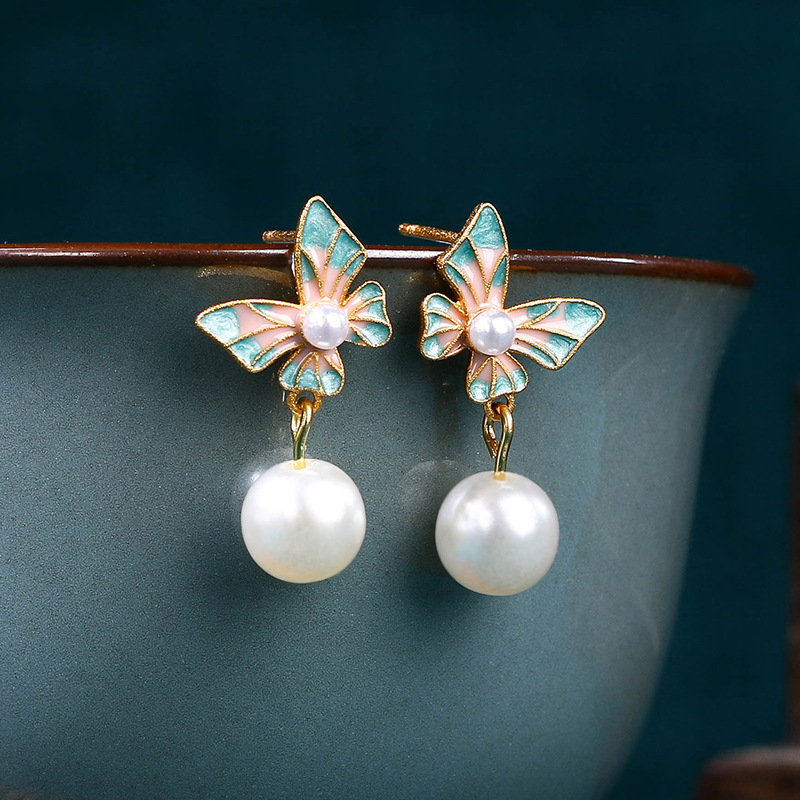 Be the first to review “925 silver needle niche design enamel butterfly pearl stud earrings Women’s Light luxury High sense 2024 New earrings”