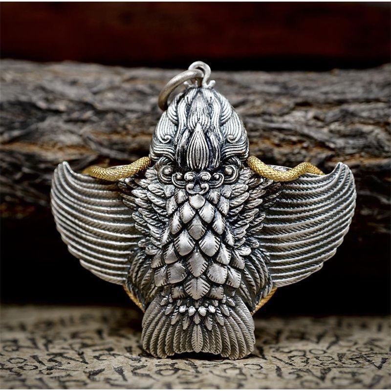 925 Sterling Silver Dapeng Goldwinged Bird Buddha Thangka Pendant Tibetan Necklace High-grade Pendant Tantric Accessories