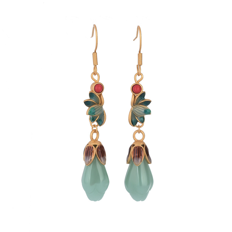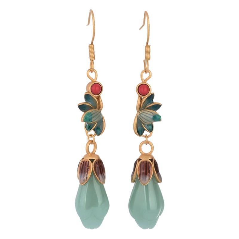 o1cn01vchcg41bs2ure1u3w 0 0 cibAiryuan National Trend Retro Jewelry Enamel Niche 925 Silver Ear Needle Magnolia Flower Imitation Hetian Jade Ancient Style Earrings