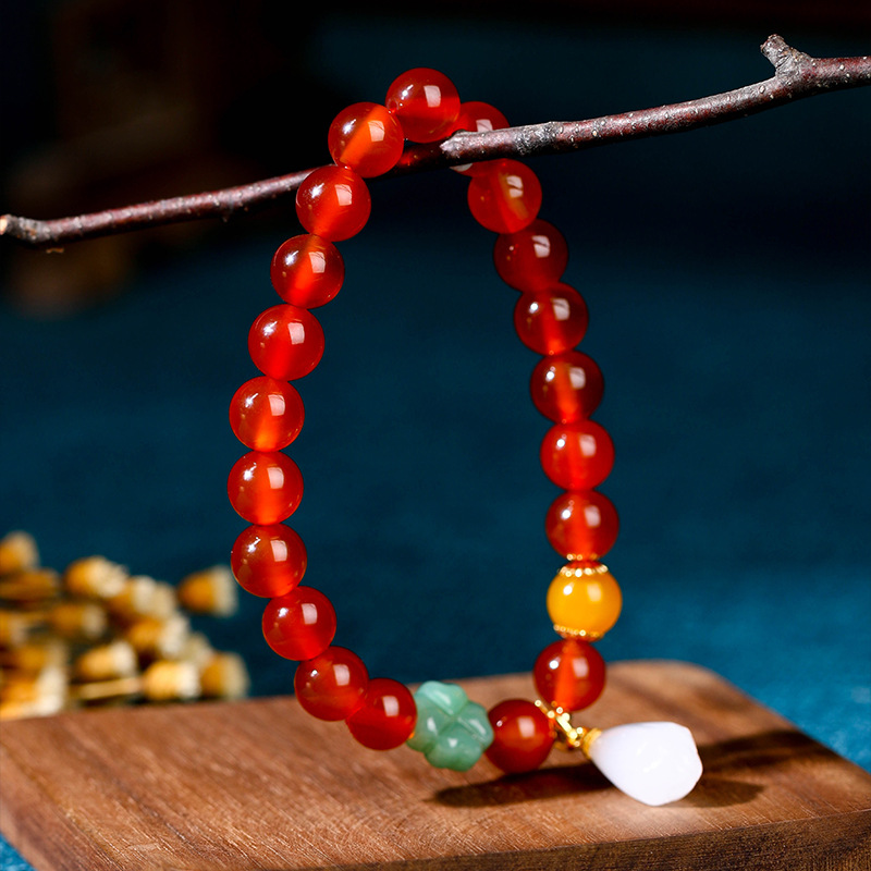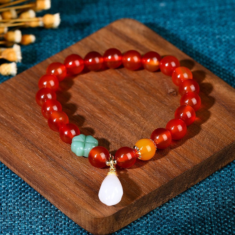 Al Eryuan Red Agate Beaded Bracelet Female Original Guofeng Pendant Bracelet for Classmates Girlfriend Gift Bracelet Hand