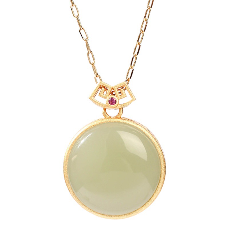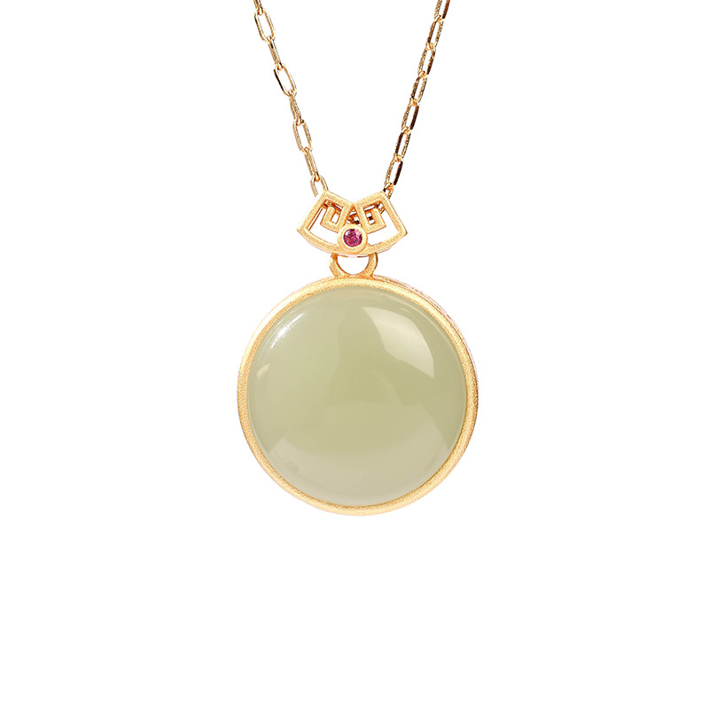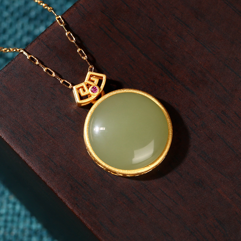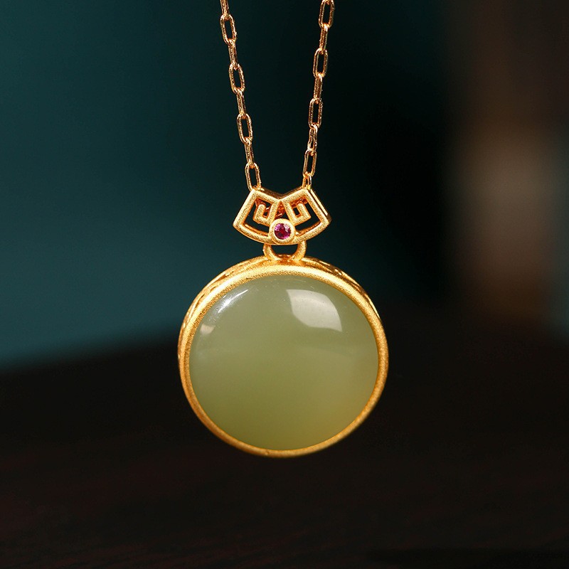 Al Yuan Chinese Style Cheongsam Hanfu Accessories Ancient Method Gold Plated Safe and Uneventful Brand Hetian Jade Saponite Necklace