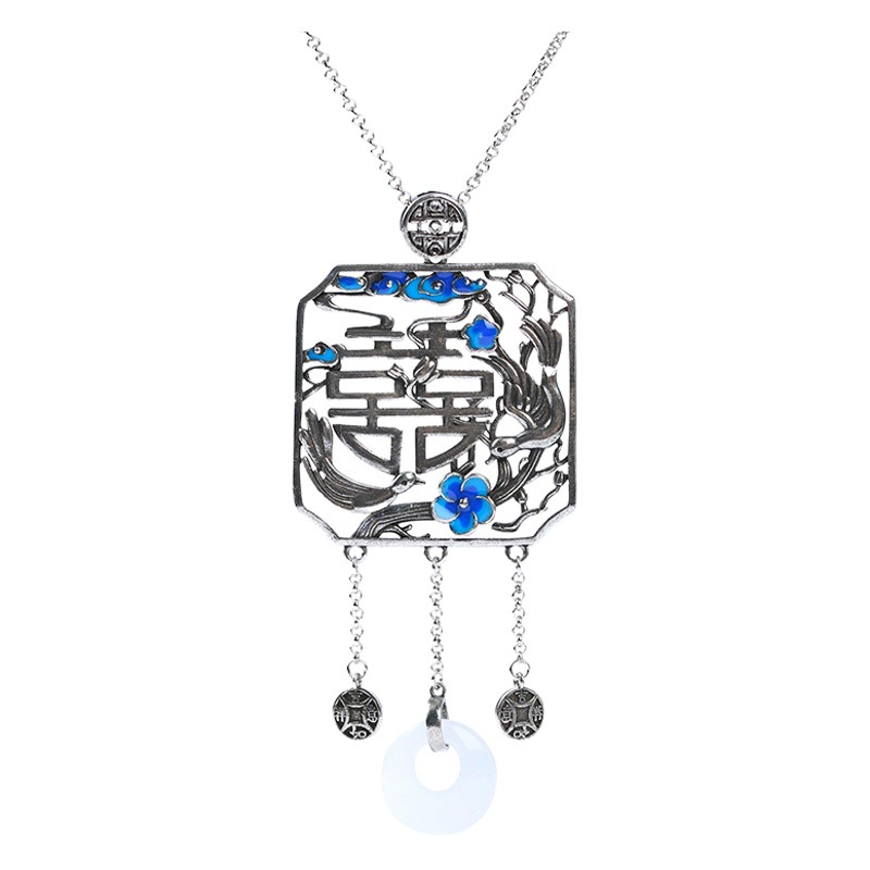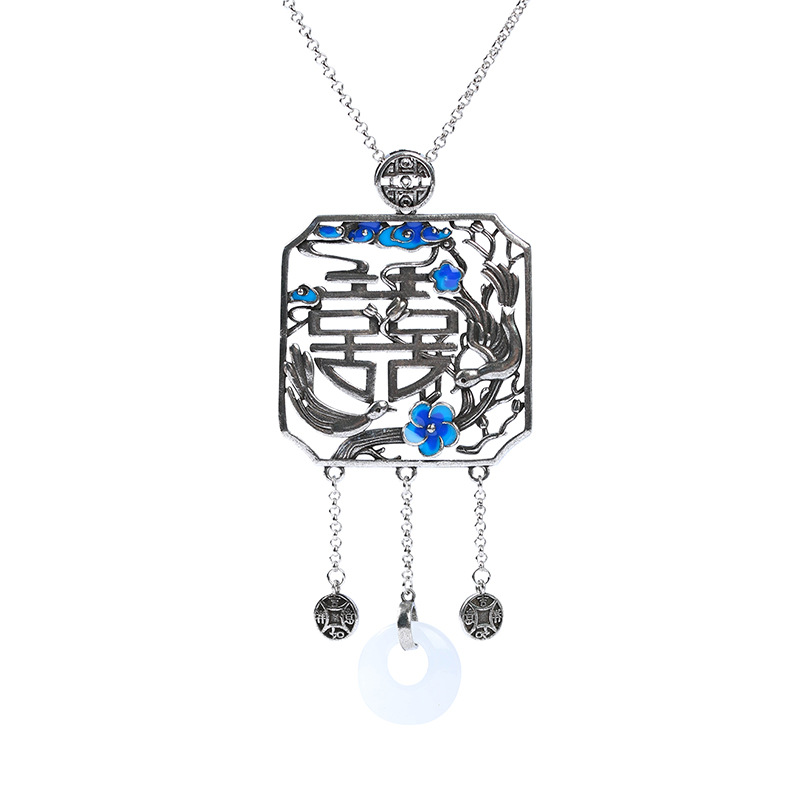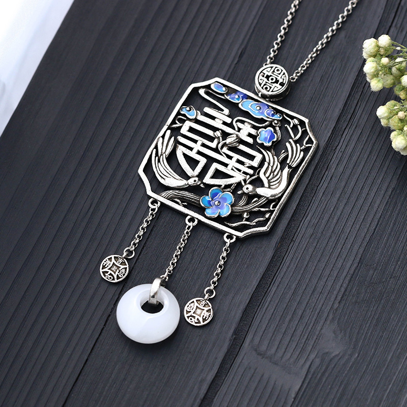Al Yuan creative design Chinese style element design happy eyebrows imitation Hetian Jade peace buckle tassel necklace