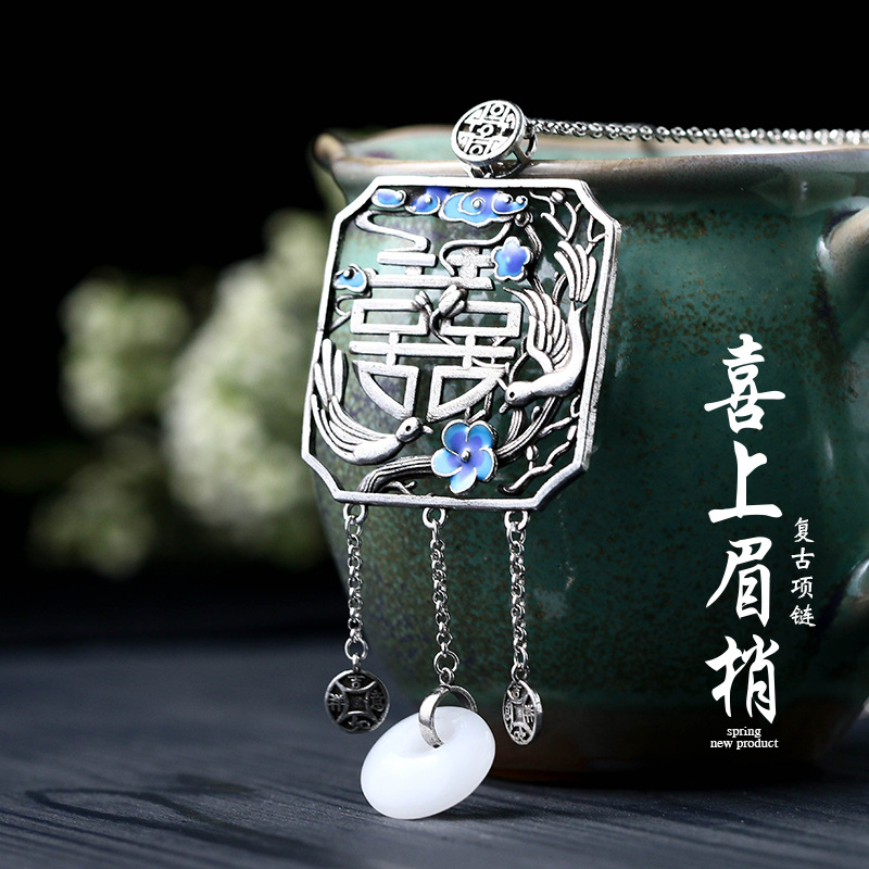 o1cn01ks54ly1bs2vnniu3s 0 0 cibAl Yuan creative design Chinese style element design happy eyebrows imitation Hetian Jade peace buckle tassel necklace