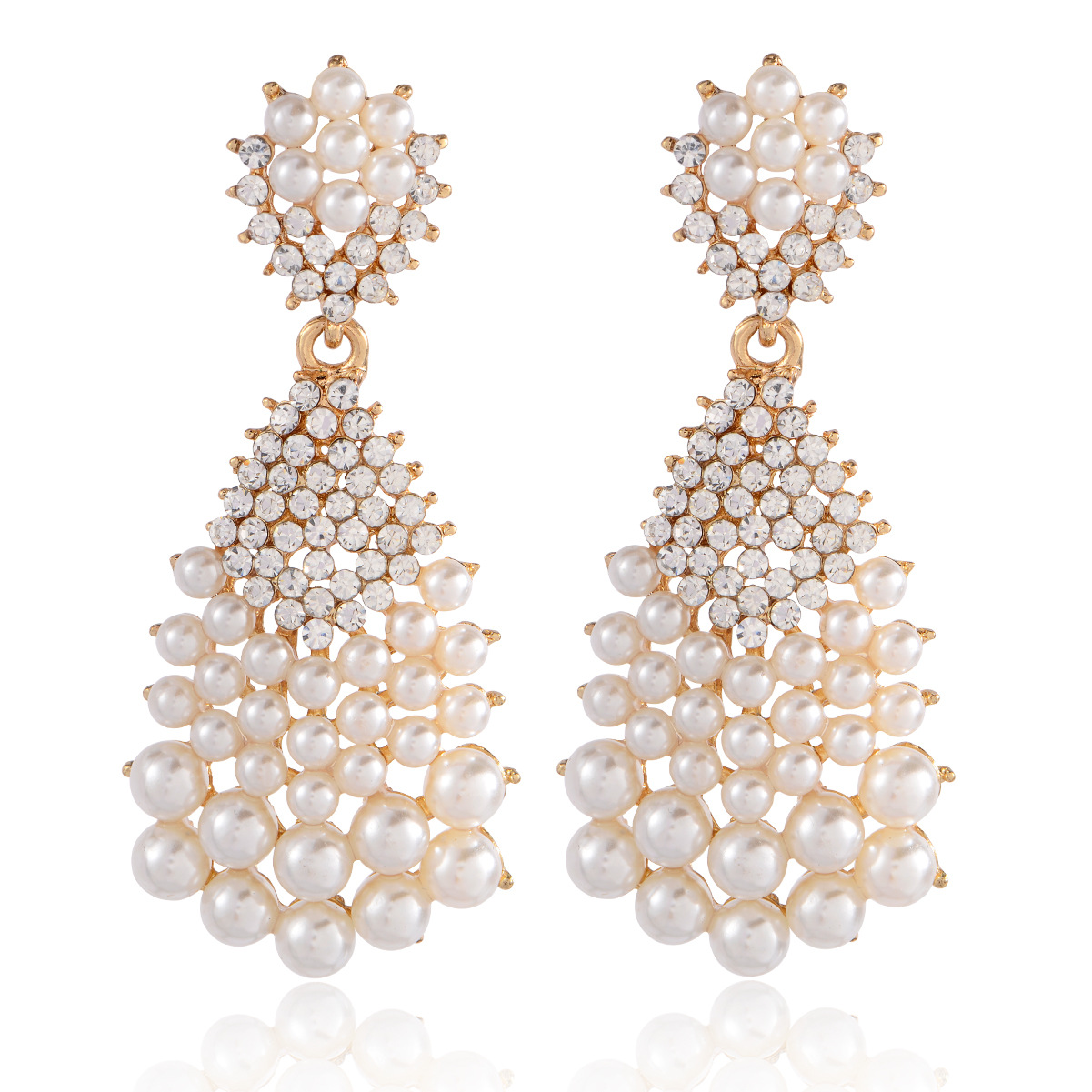 Amazon Luxury Pearl Earrings Micro Inlaid Zircon Geometric Full Millet Pearl Large Water Drop Earrings Light Luxury Earrings