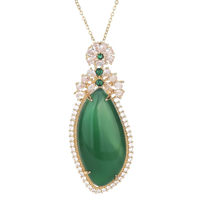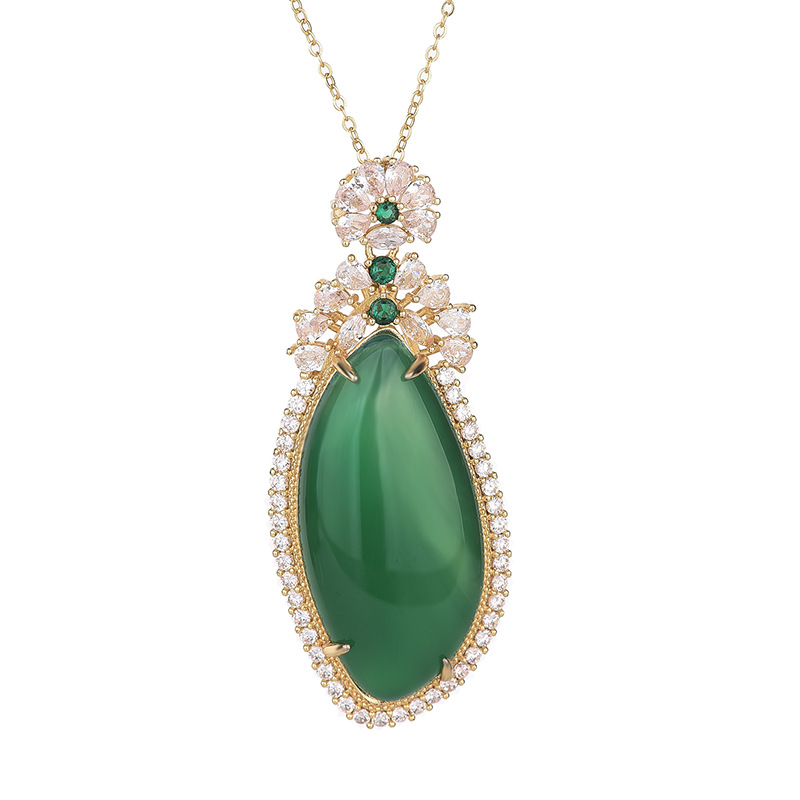 o1cn01kgzwk81bs2vn1oloy 0 0 cibAnchor Supply Ice Chalcedony Inlaid Pendant Pendant Emerald Color Full Green Yang Green Drop Shape No Mood Necklace Women