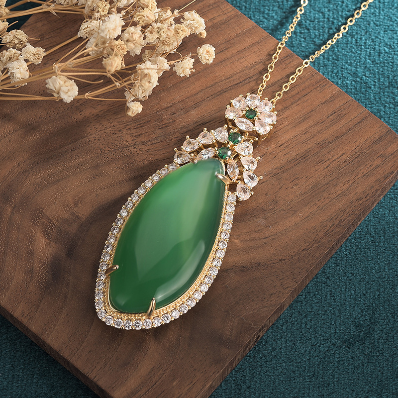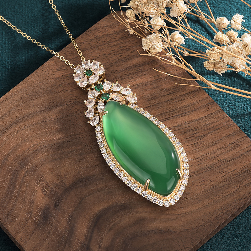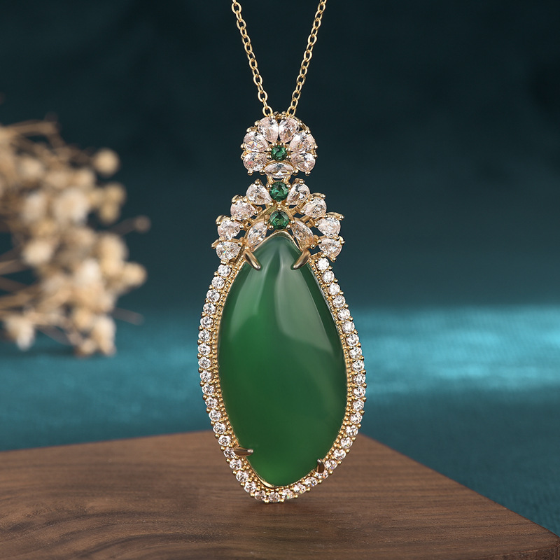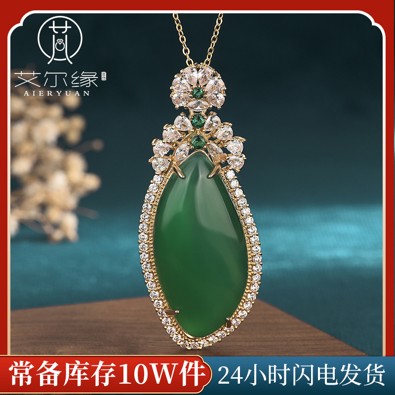 Anchor Supply Ice Chalcedony Inlaid Pendant Pendant Emerald Color Full Green Yang Green Drop Shape No Mood Necklace Women
