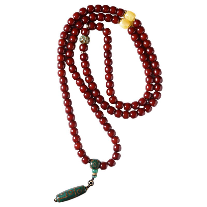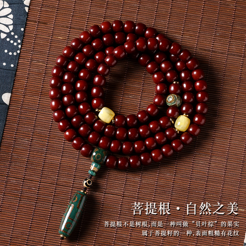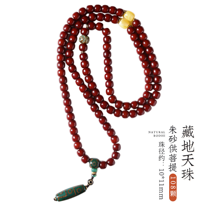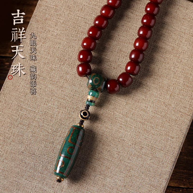 Ancient Cinnabar for Bodhi Bracelet Tibetan-style Nine-eye Bead Agate Pendant 108 Bead Necklace for Men and Women