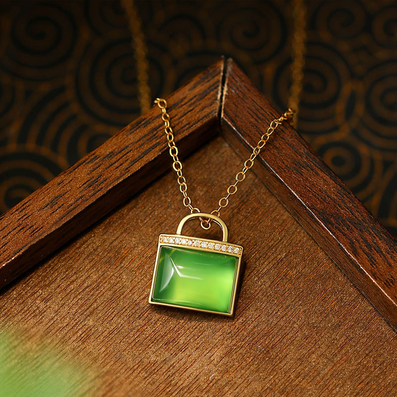 Ancient Gold Craftsmanship, Long-Lasting Color Retention, Valentine’s Day Imitation Jade Concentric Lock Elegant Necklace, Couple Student Style Clavicle Chain