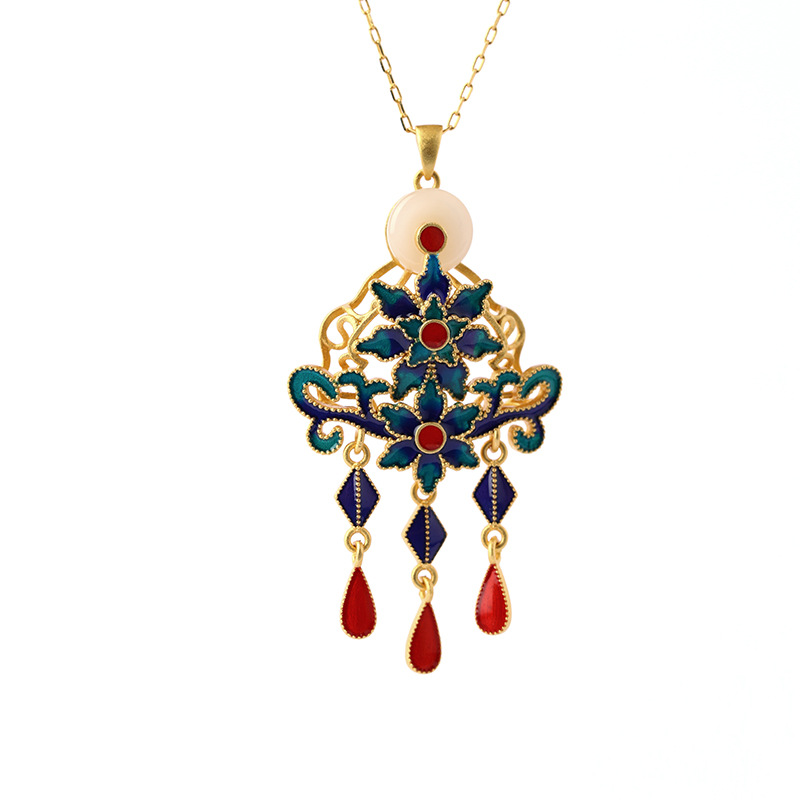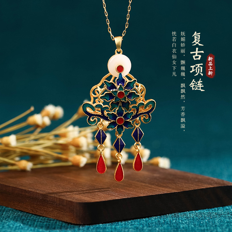 o1cn01pvcc0c1bs2uu8ywbu 0 0 cibAttractions stall hot sale Chinese style enamel drop glaze craft imitation Hetian Jade tassel necklace Ruyi peace lock pendant