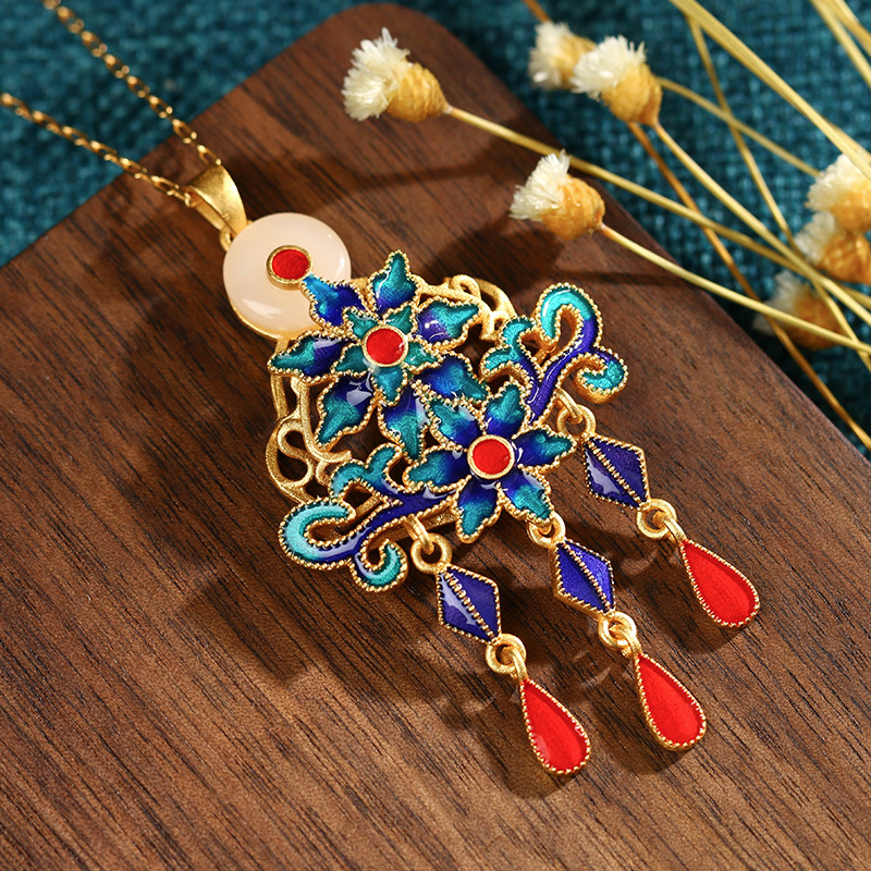 Be the first to review “Attractions stall hot sale Chinese style enamel drop glaze craft imitation Hetian Jade tassel necklace Ruyi peace lock pendant”