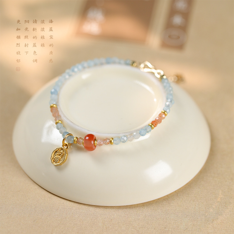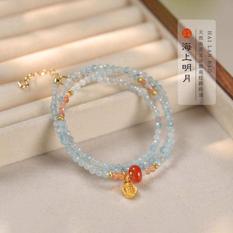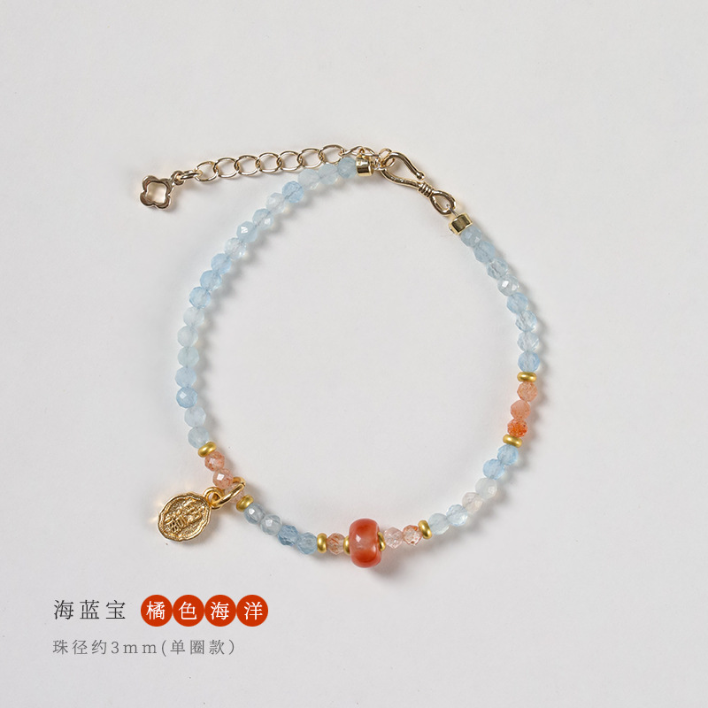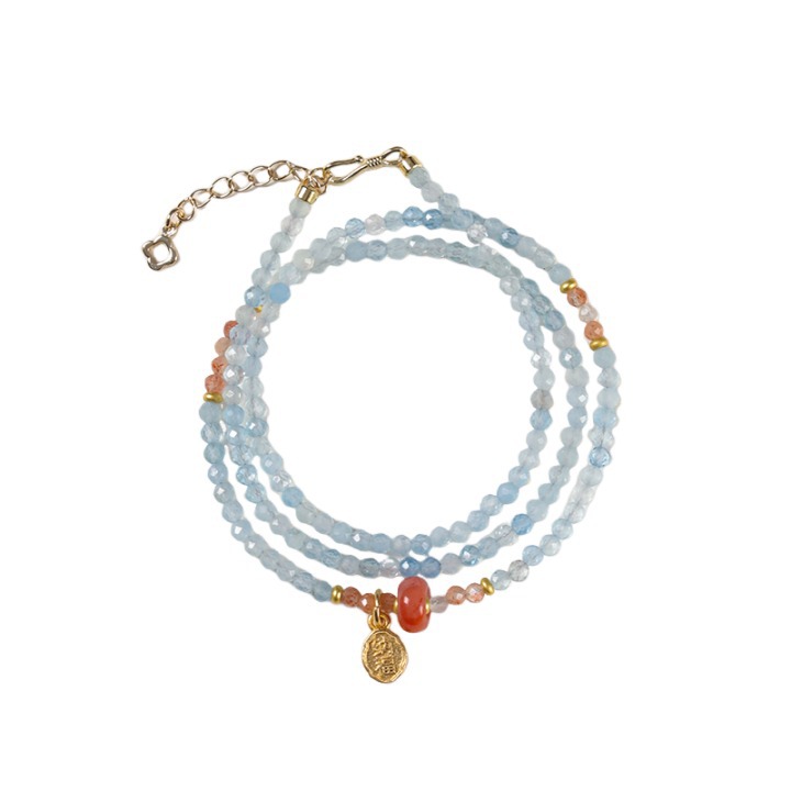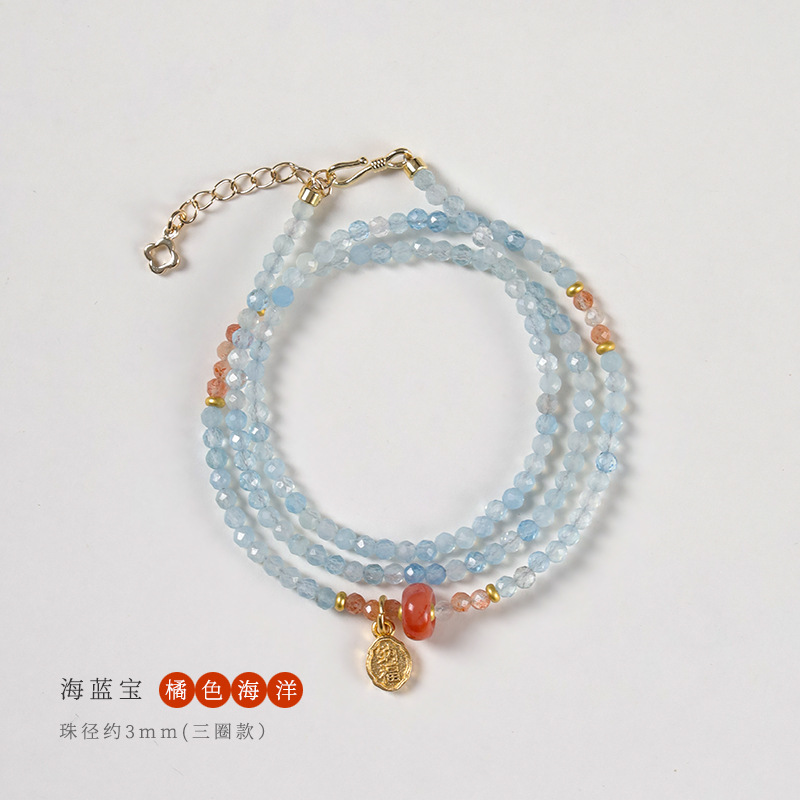 Be the first to review “Auspicious Good Luck Guofeng Aquamarine 3mm Cut Face Bead Fine Single Circle Stacked Wrist Bracelet Clavicle Necklace”