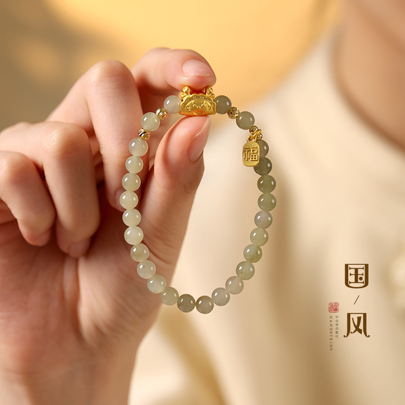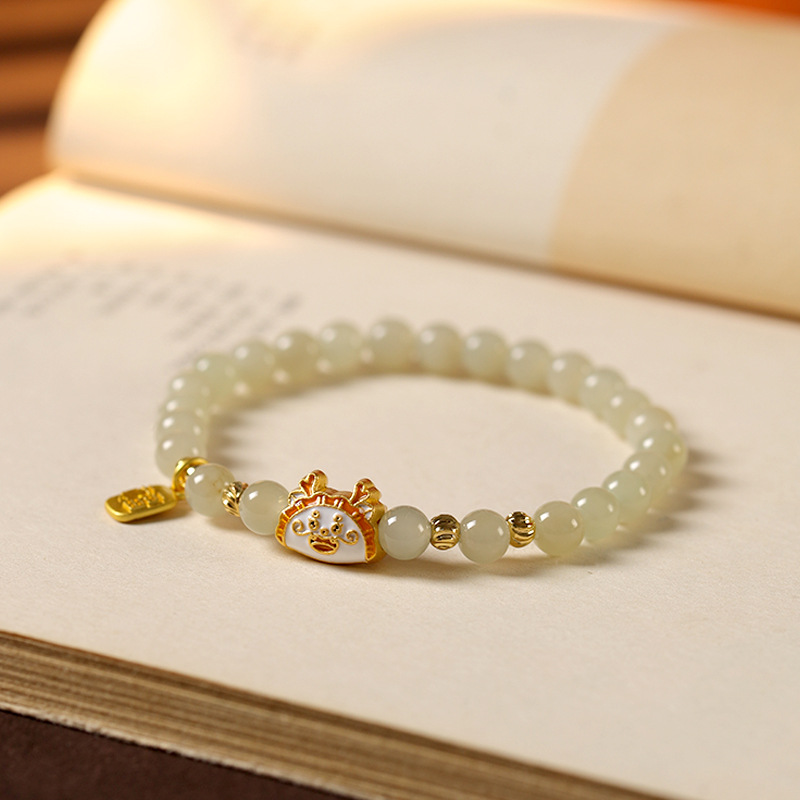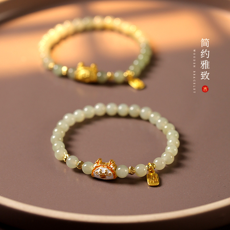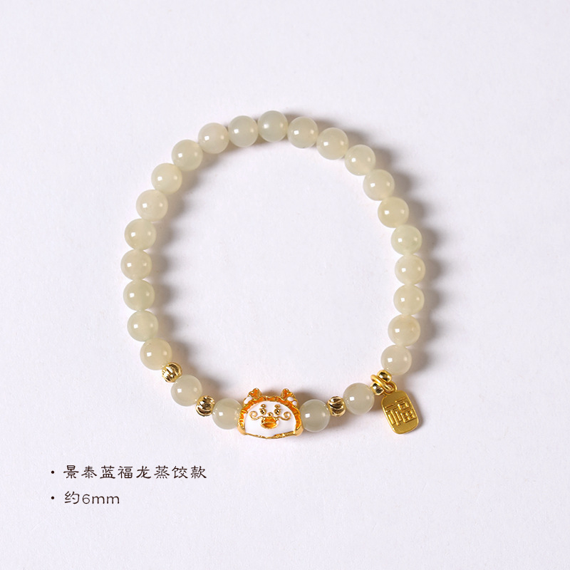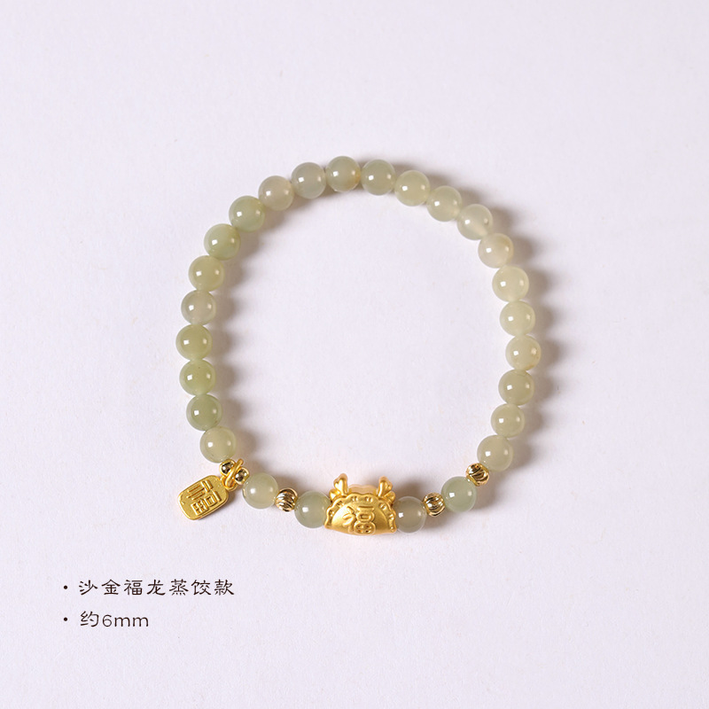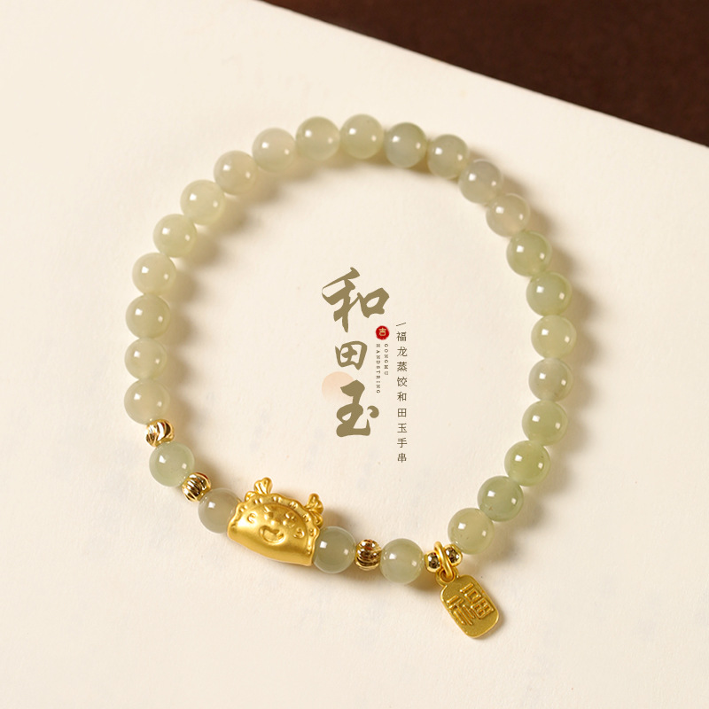 Benmingnian Fulong Steamed Dumplings Dragon Year Bracelet Women’s Hetian Jade Cloisonne Sands Light Luxury Niche Bracelet Bracelet Batch