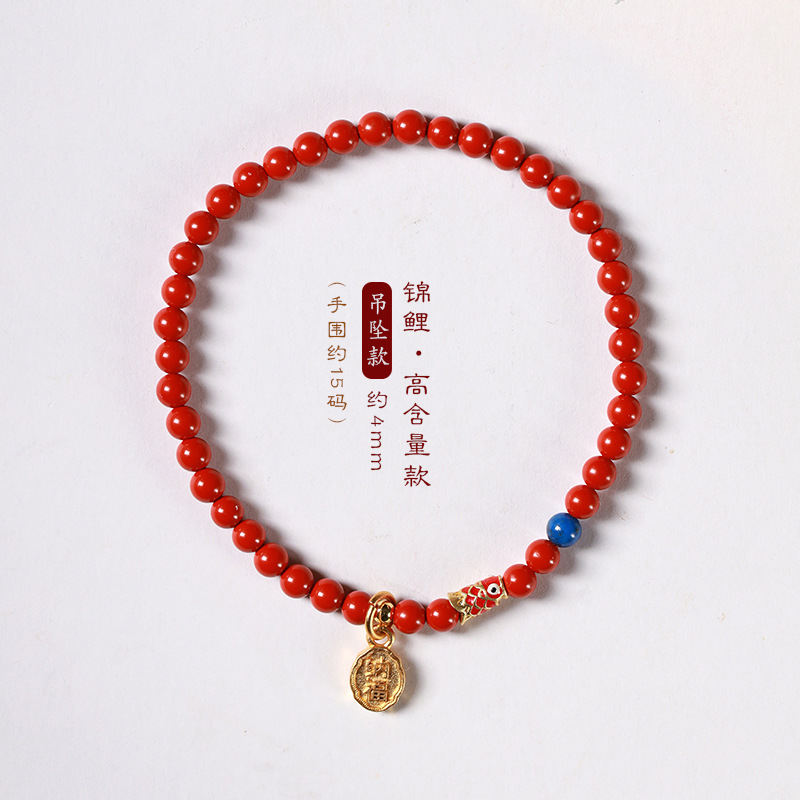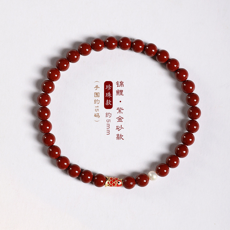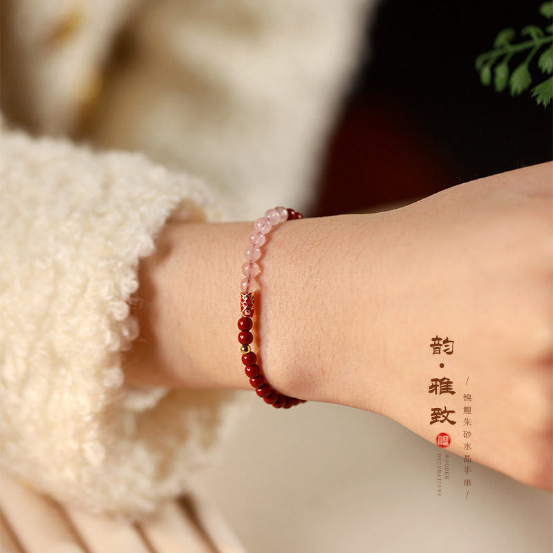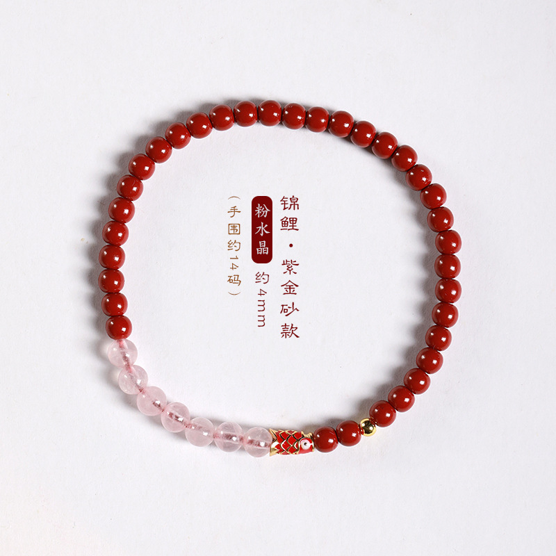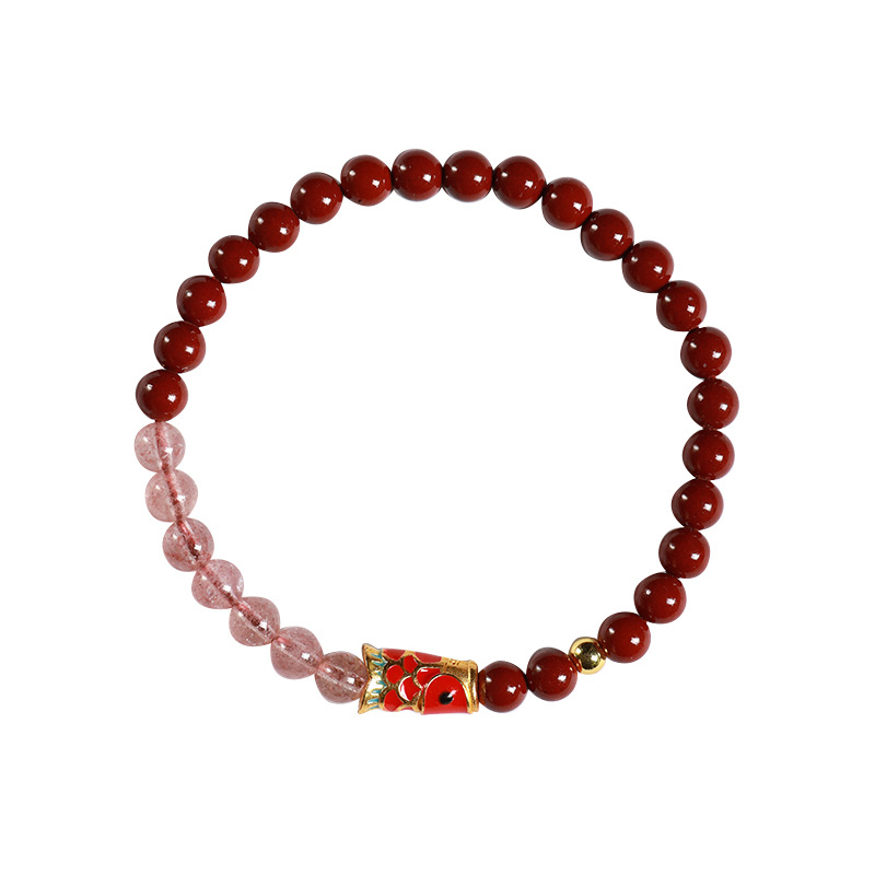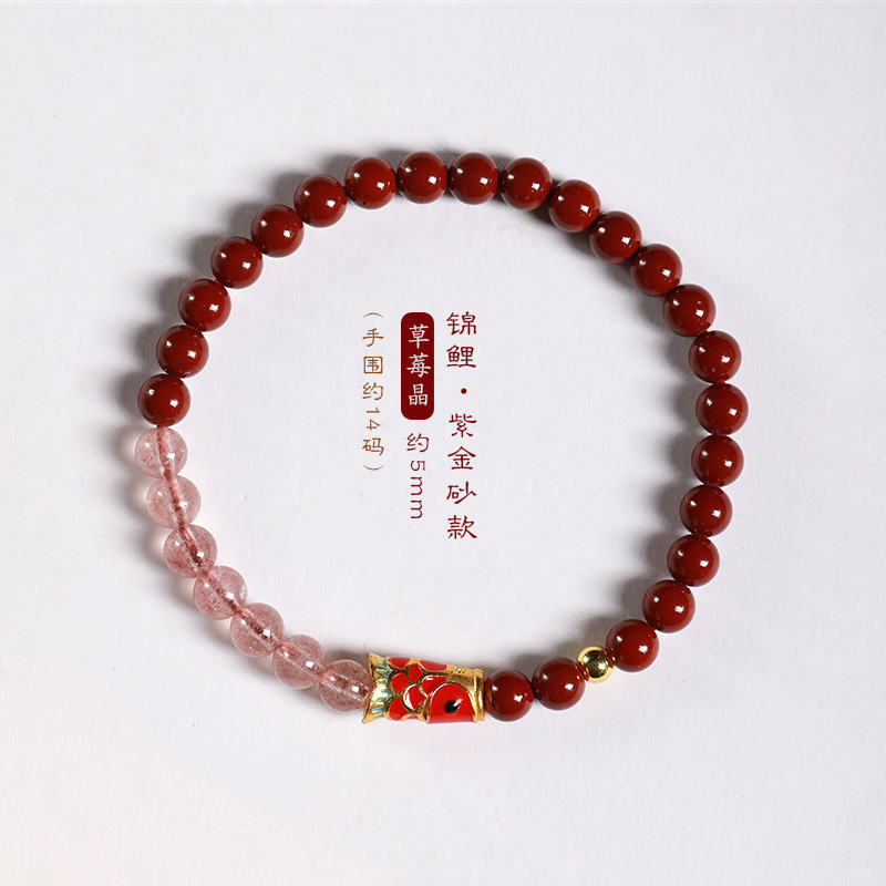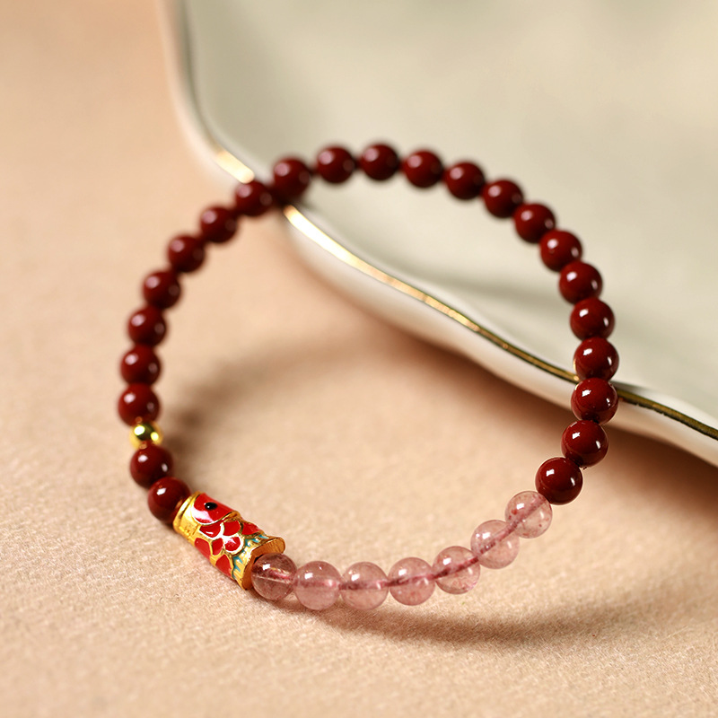 Benmingnian Purple Sand Strawberry Crystal Cloisonne Koi Bracelet Pink Crystal Cinnabar Bracelet Girlfriend’s Birthday Gift