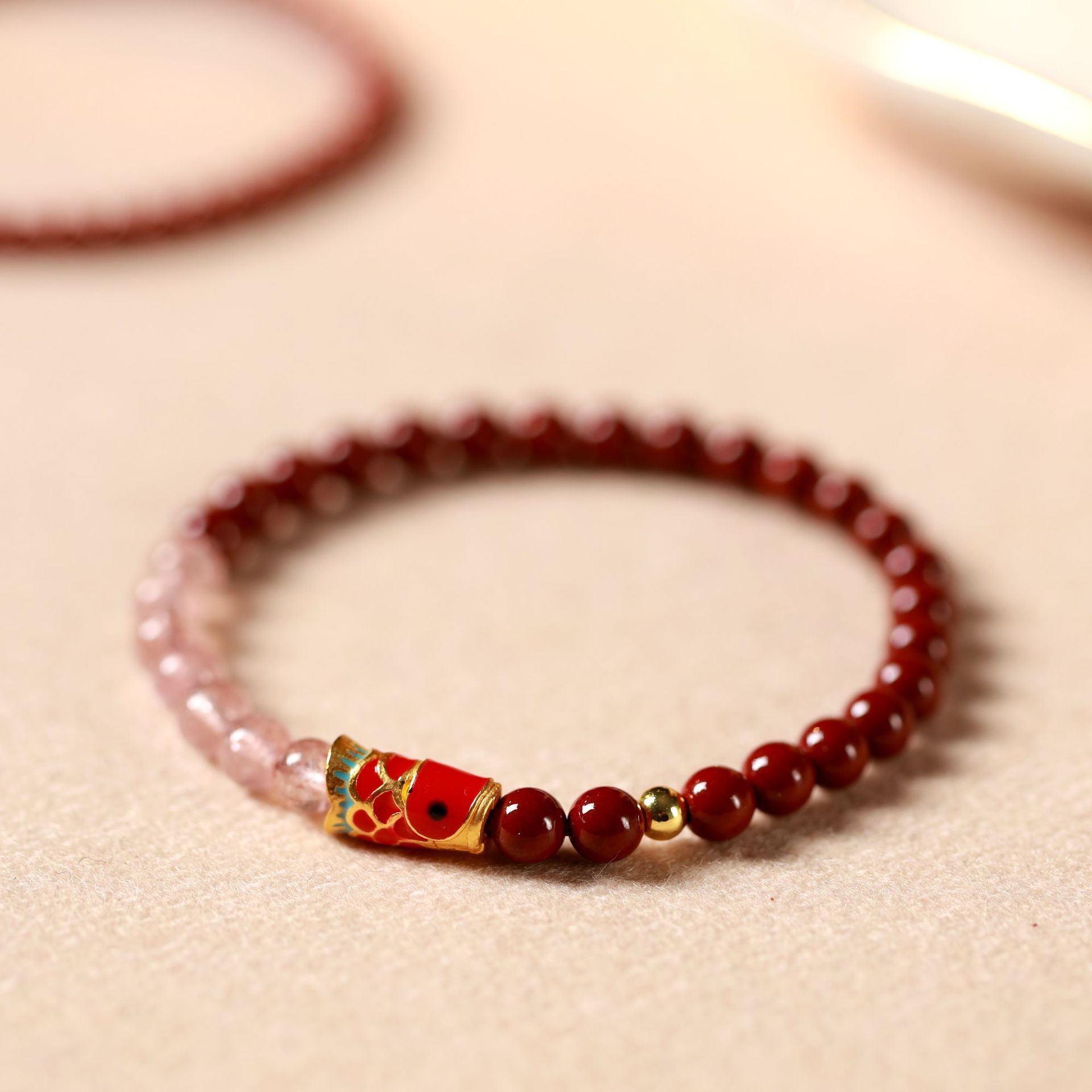 o1cn01nde8491xm1hk8fo50 2207533192965 0 cibBenmingnian Purple Sand Strawberry Crystal Cloisonne Koi Bracelet Pink Crystal Cinnabar Bracelet Girlfriend’s Birthday Gift