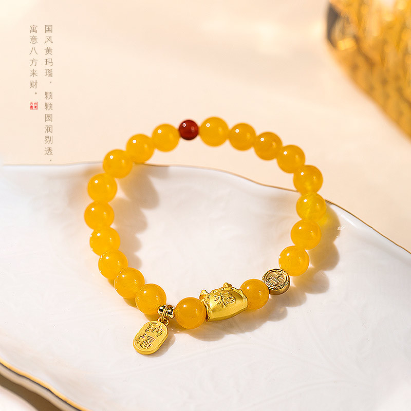 Benmingnian Year of the Dragon Chengxiang Yellow Agate Single Ring Nafu Bracelet Artistic Mori Bracelet Female Male Universal Bracelet Batch