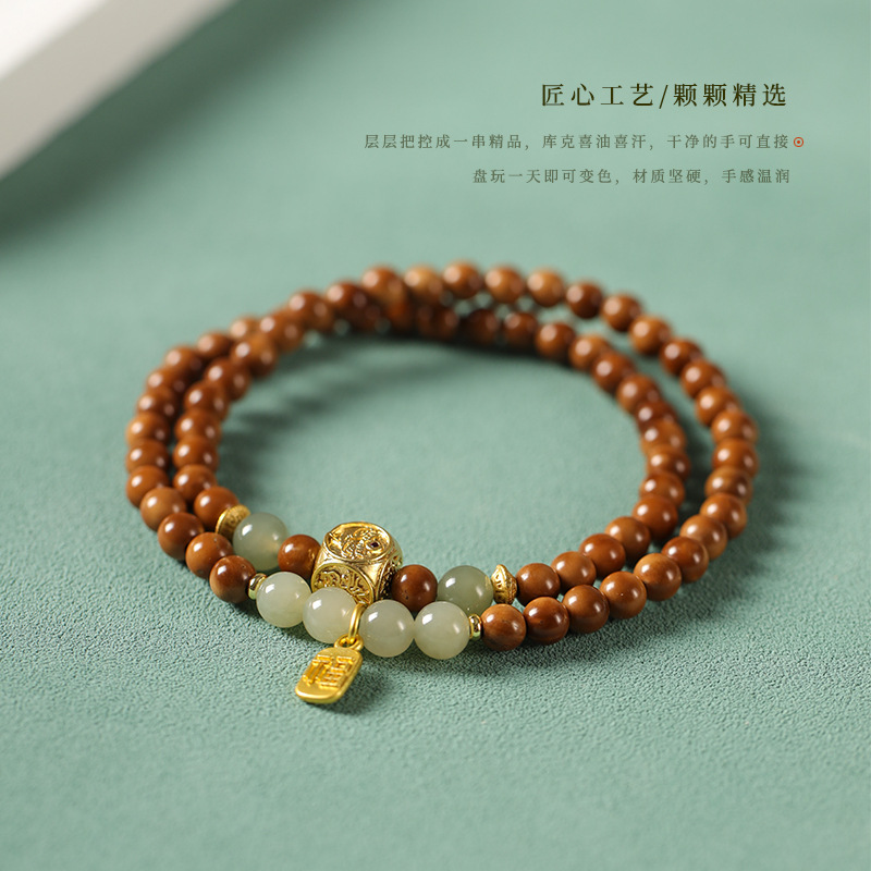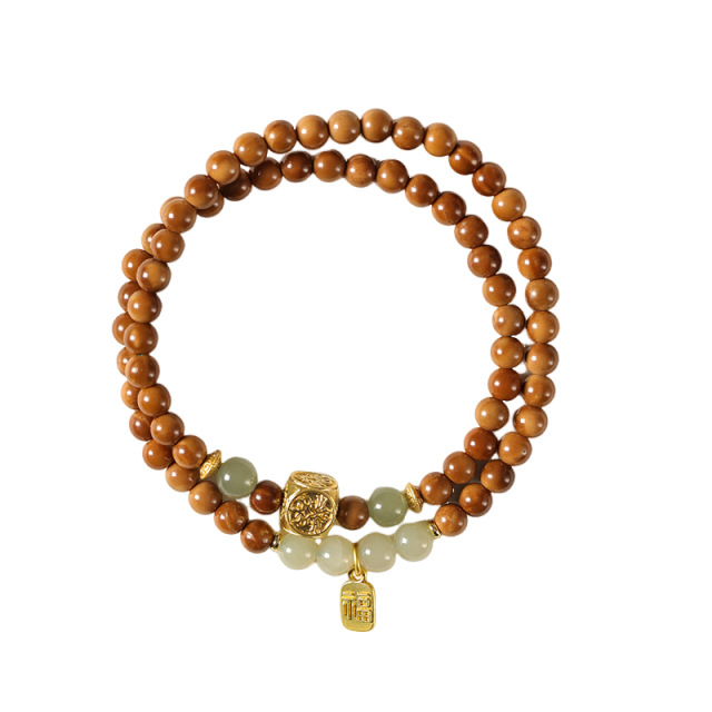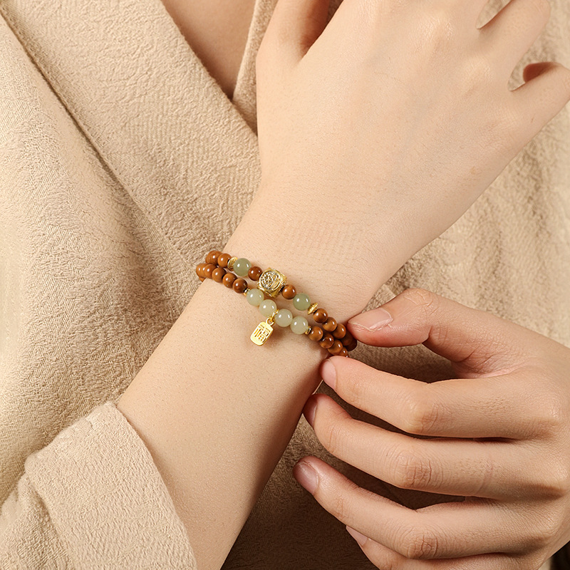 Boutique High Throwing Cook Bodhi Spelling Hetian Jade Sha Jinfu Brand Square Good Luck Double Circle Stacked Dai Suya Bracelet