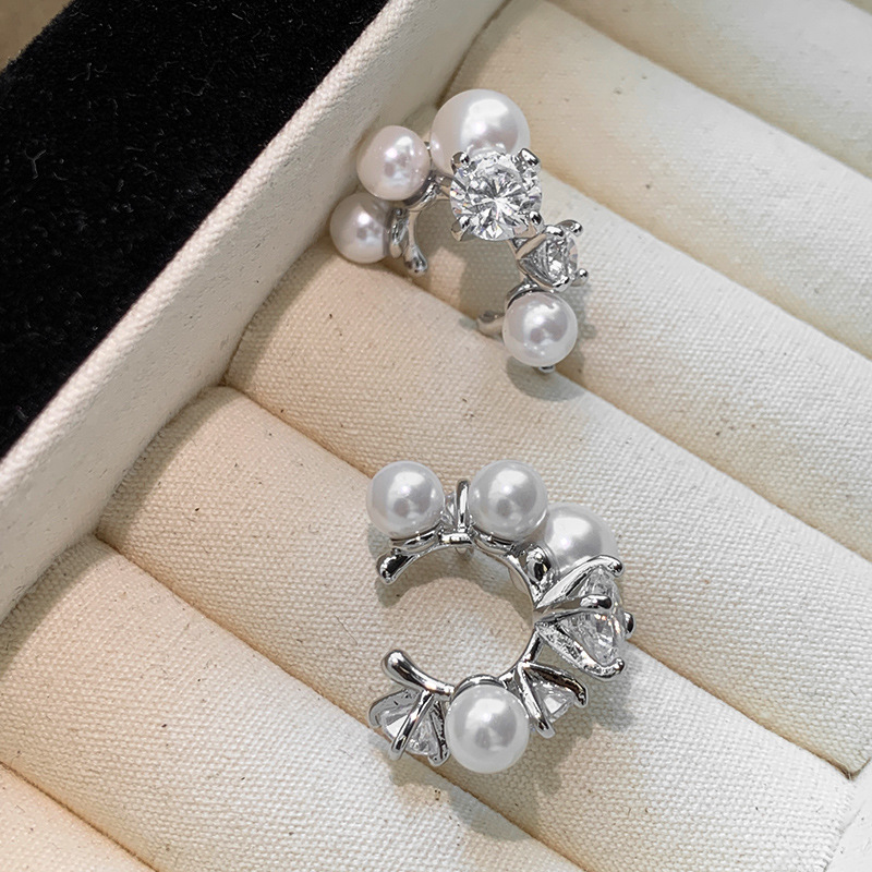 CE Flash Diamond Pearl Ear Clip Without Ear Holes Female Niche Design High-grade Ear Clip 2025 New Unique Earrings